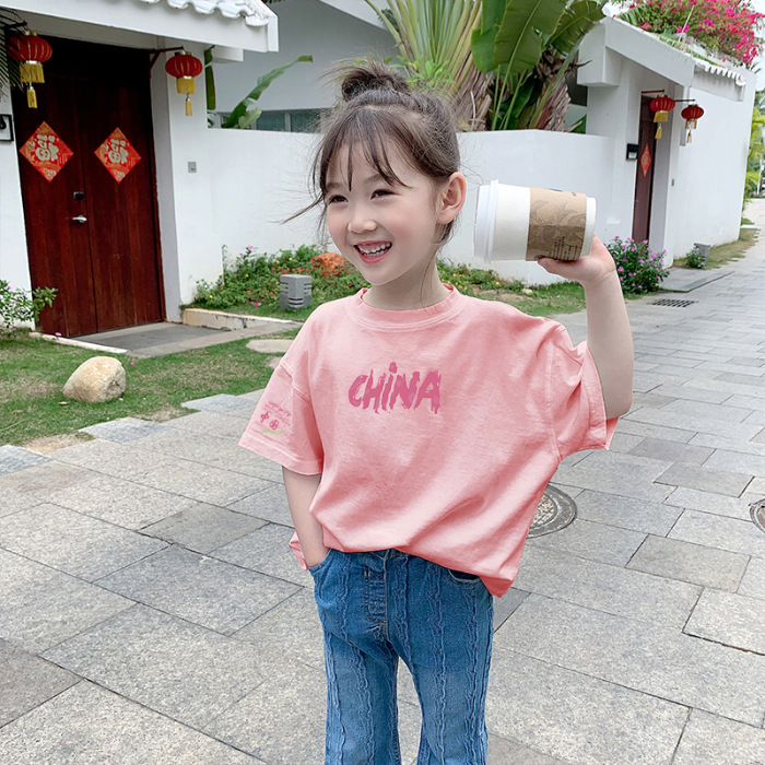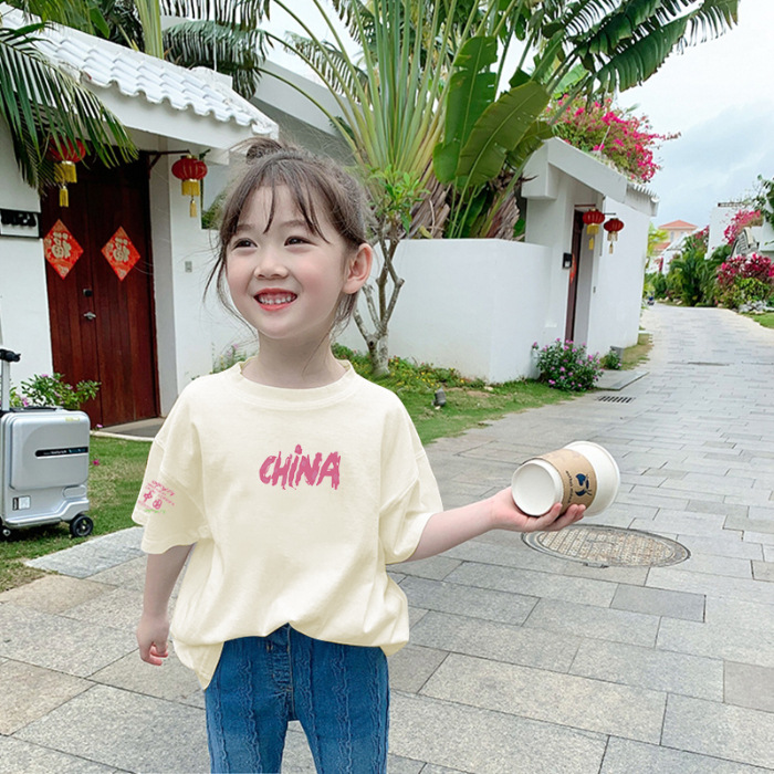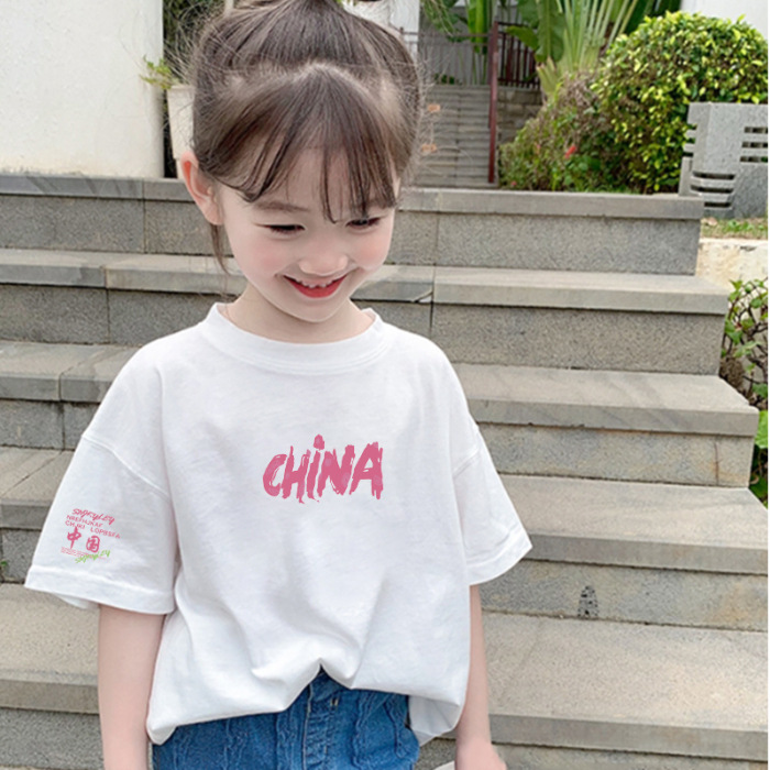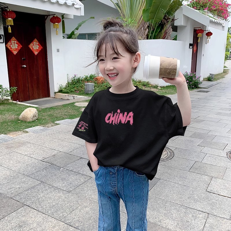 【纯棉】国潮女童短袖T恤衫2024夏季新款宽松中大童装男宝宝半袖t