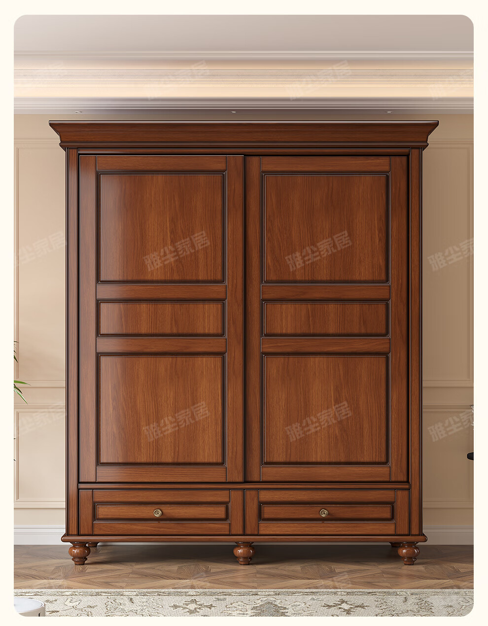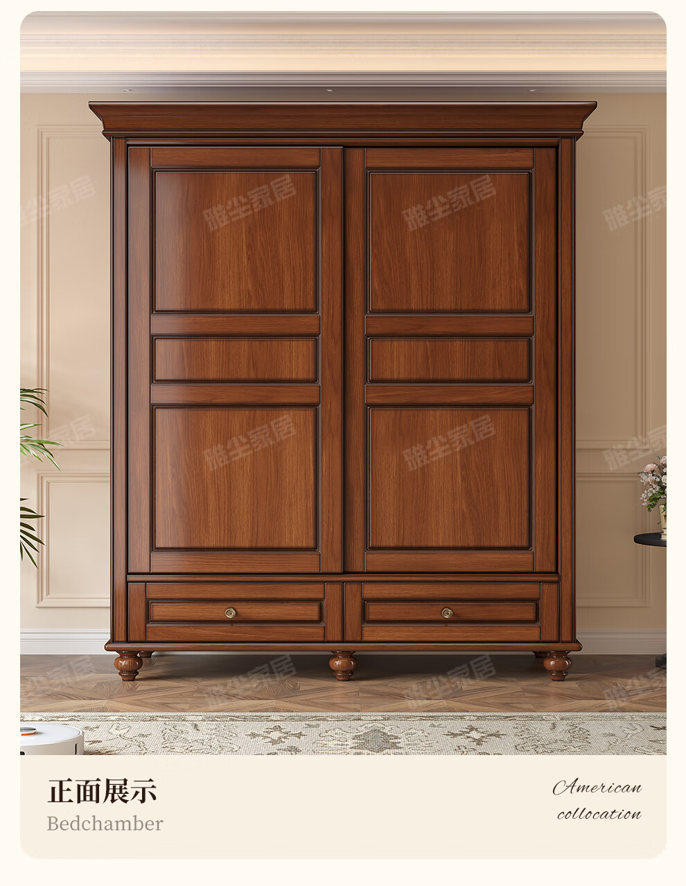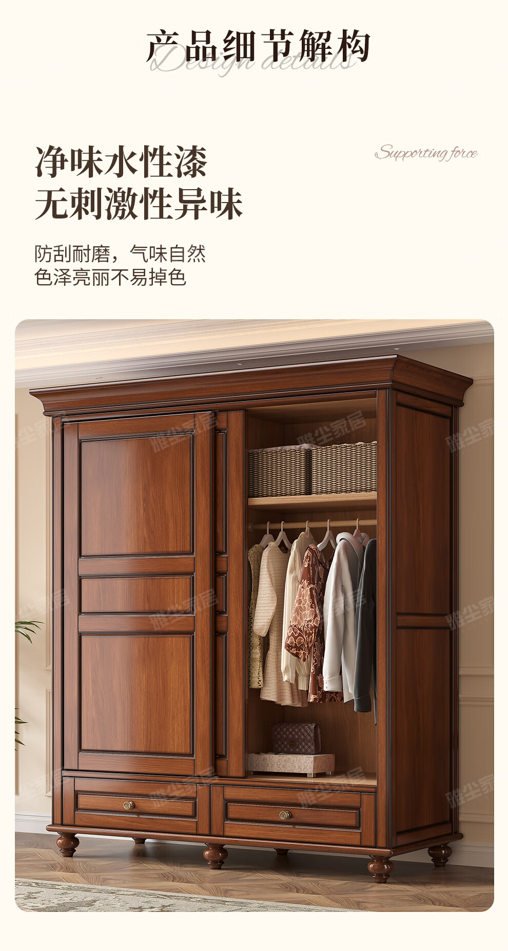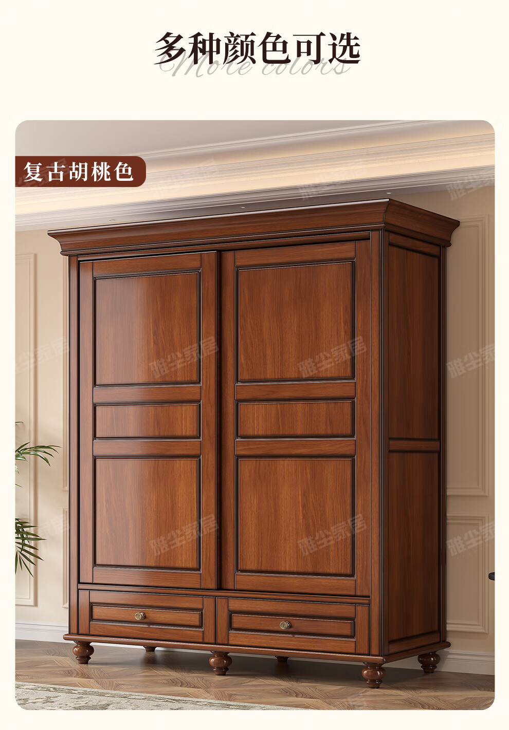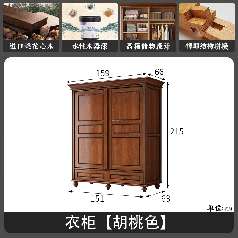 아메리칸 스타일 레트로 솔리드 우드 옷장 슬라이딩 도어 침실 가구 1.5 m 마호가니 저장 옷장 작은 아파트스토어 가기