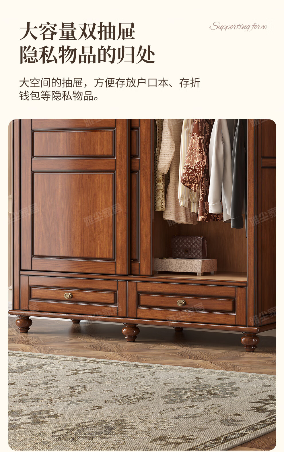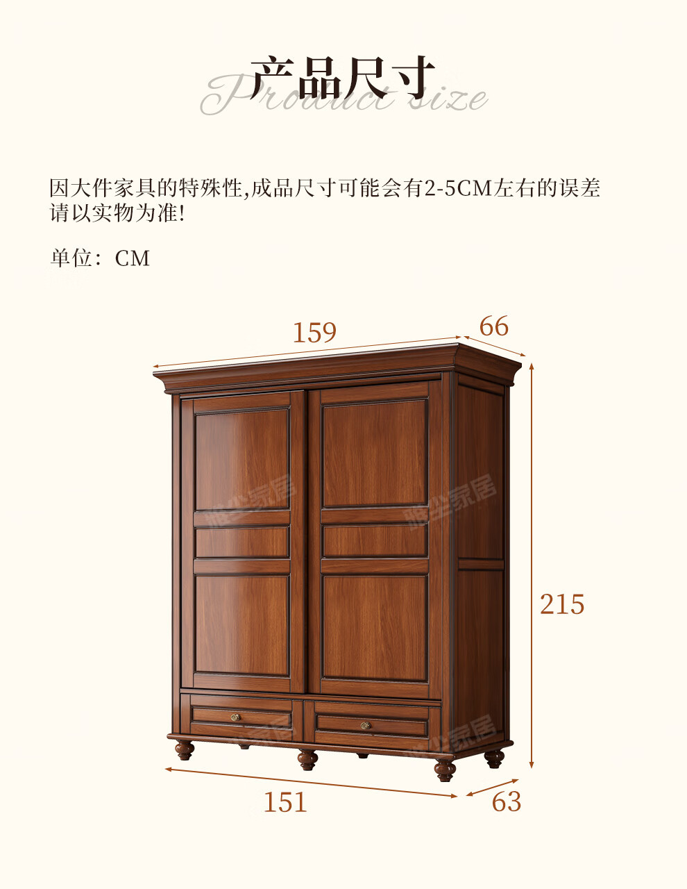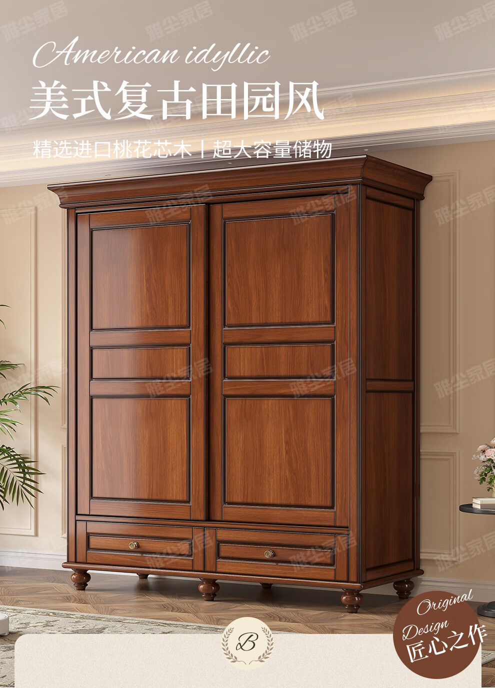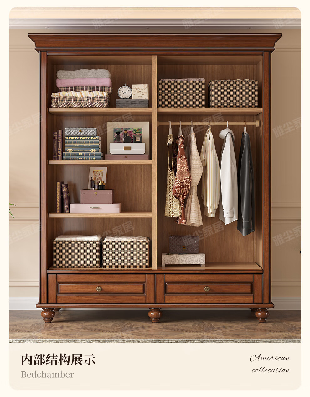 아메리칸 스타일 레트로 솔리드 우드 옷장 슬라이딩 도어 침실 가구 1.5 m 마호가니 저장 옷장 작은 아파트스토어 가기