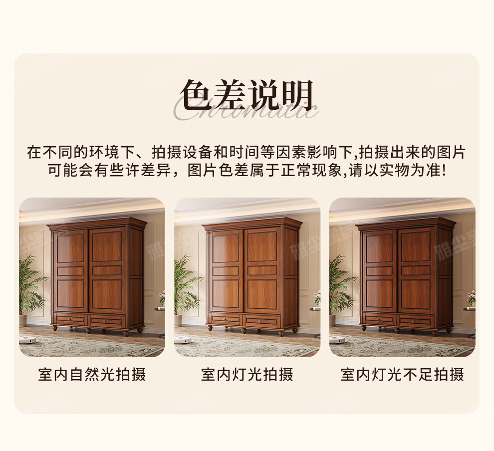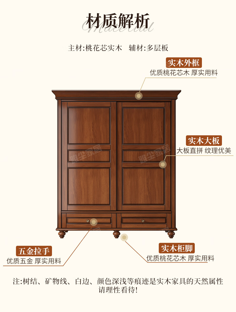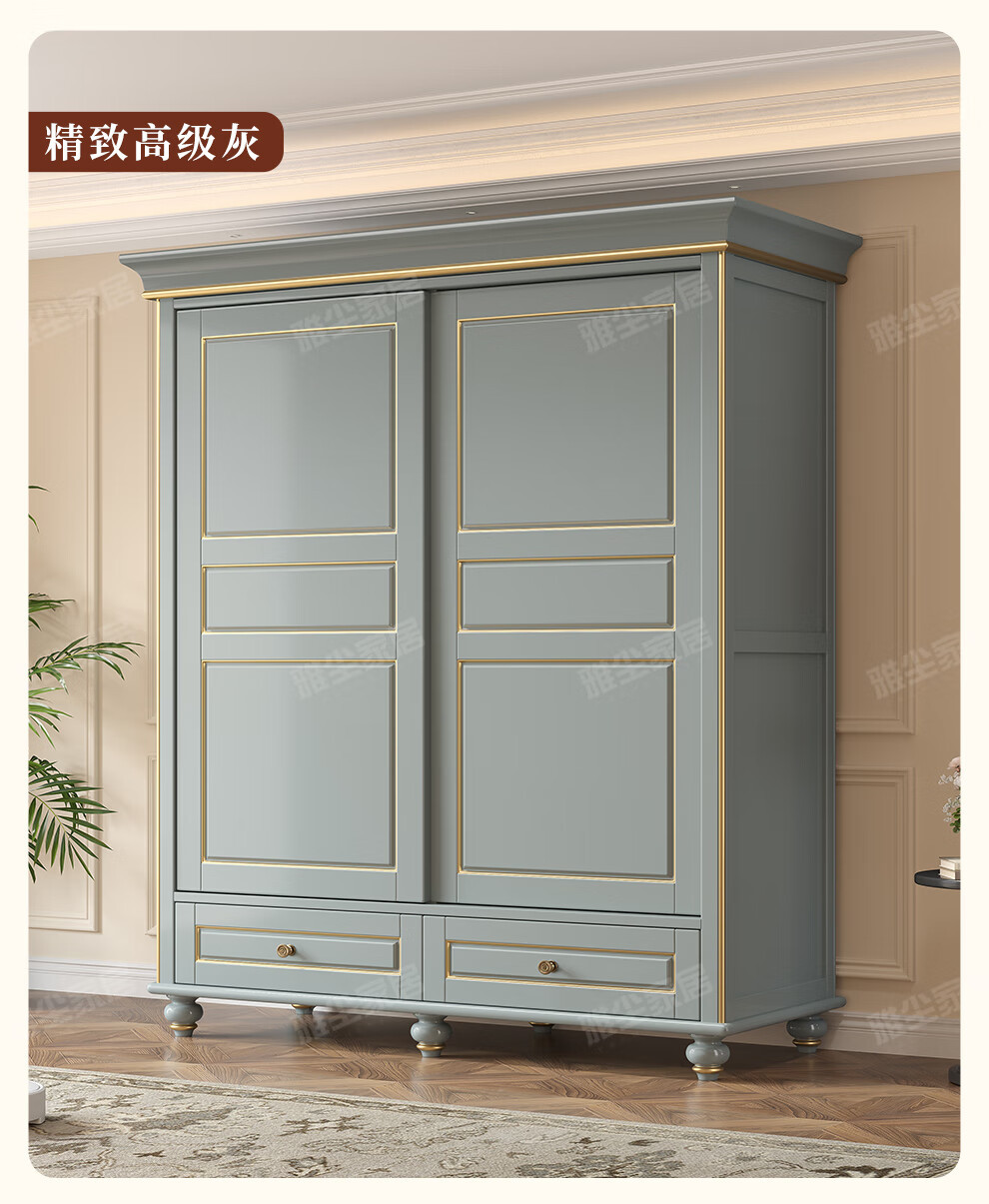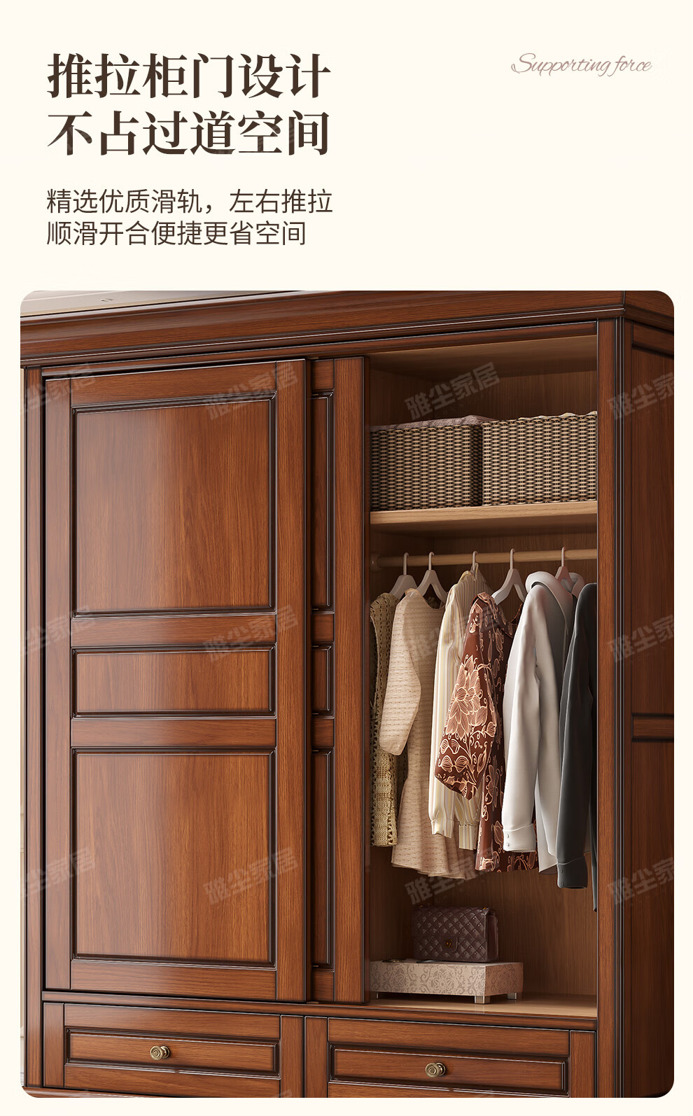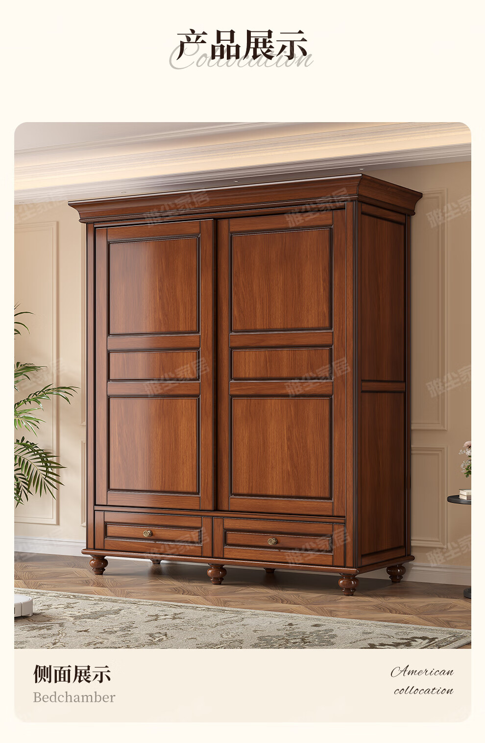 아메리칸 스타일 레트로 솔리드 우드 옷장 슬라이딩 도어 침실 가구 1.5 m 마호가니 저장 옷장 작은 아파트스토어 가기