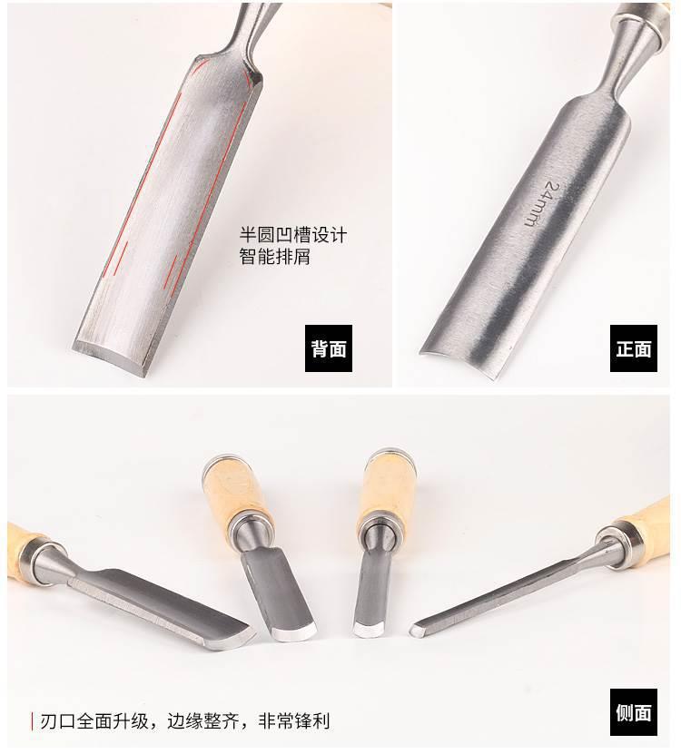 크롬 바나듐 강철 특수 강철 목공 치 젤 나무 끌 나이프 플랫 삽 너도밤 나무 손잡이 평평한 치 젤 반원형 끌 목공 도구 세트
