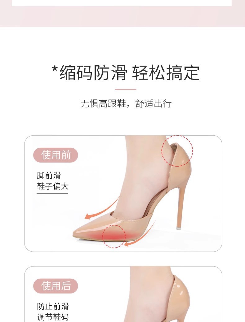 반 사이즈 깔창 여성용 숲 발 패드 통증 방지 소프트 미끄럼 방지 수축 크기 대형 1 사이즈 조정 가능한 하이힐 하프 패드 포레스트 풋 패드