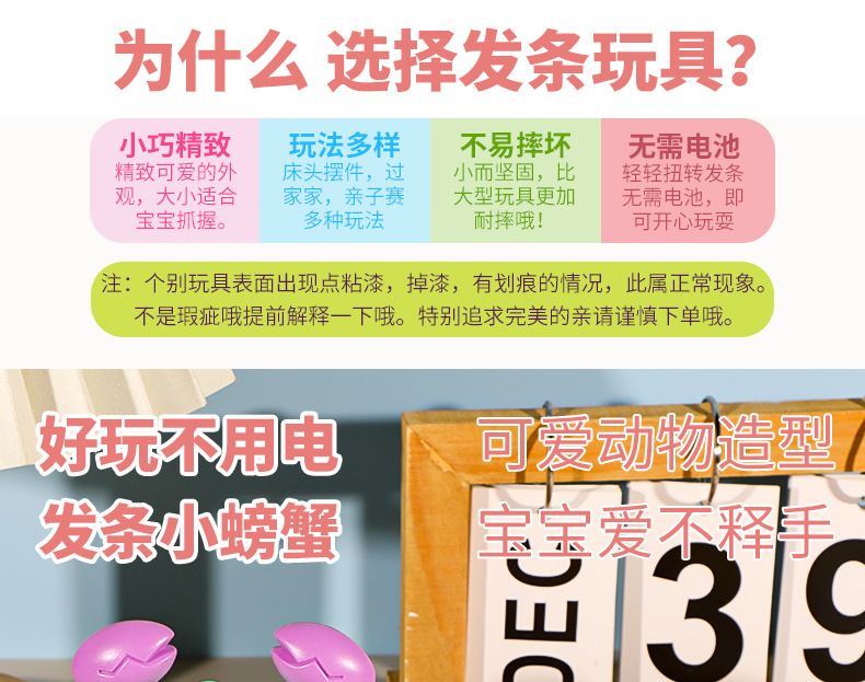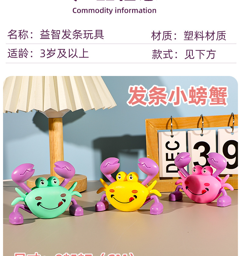 上足发条,一只螃蟹会在地上走哦!喜欢上链玩具的买家就选择这款吧!