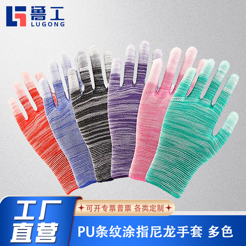 나일론 코팅 손가락 정전기 방지 장갑 13바늘 PU 얼룩말 무늬 침지 통기성 노동 보호 도매 M6 내유성, 내유성 및 미끄럼 방지