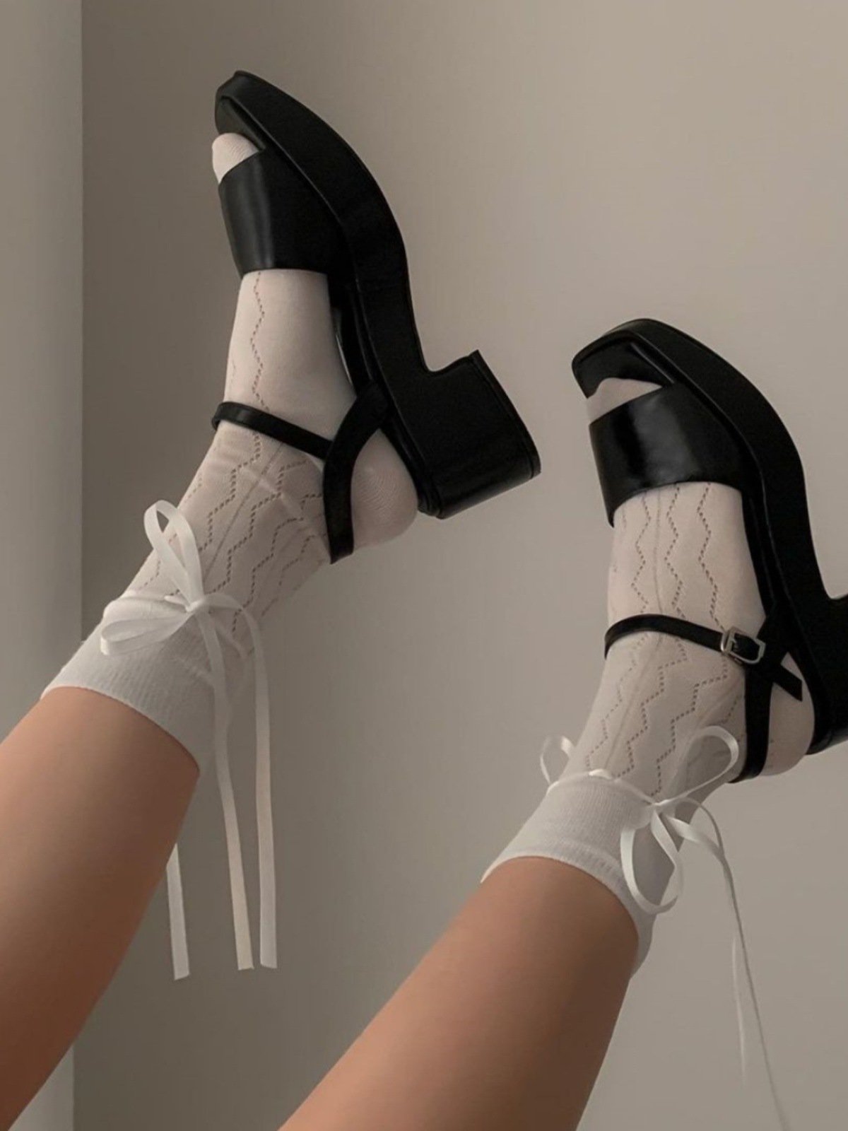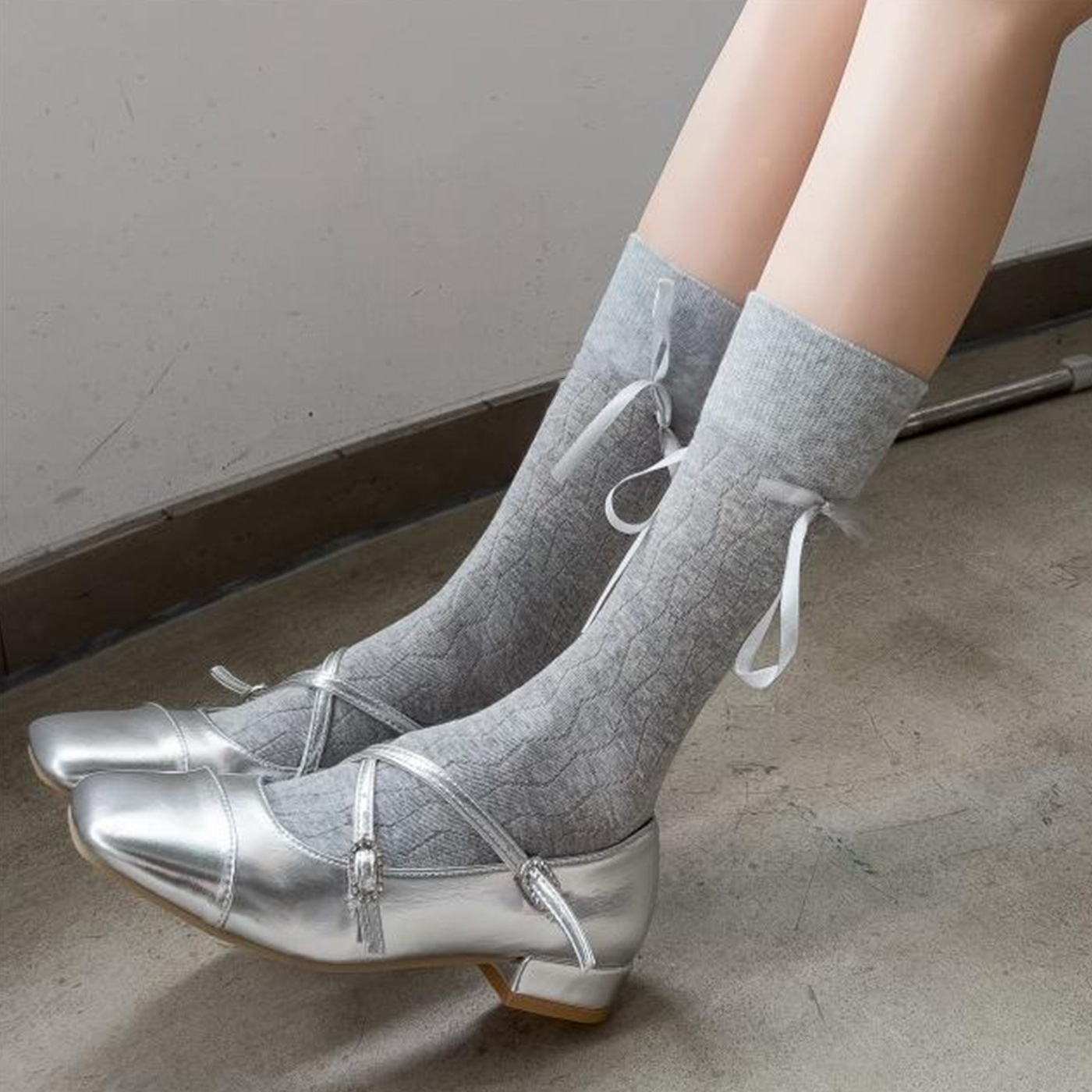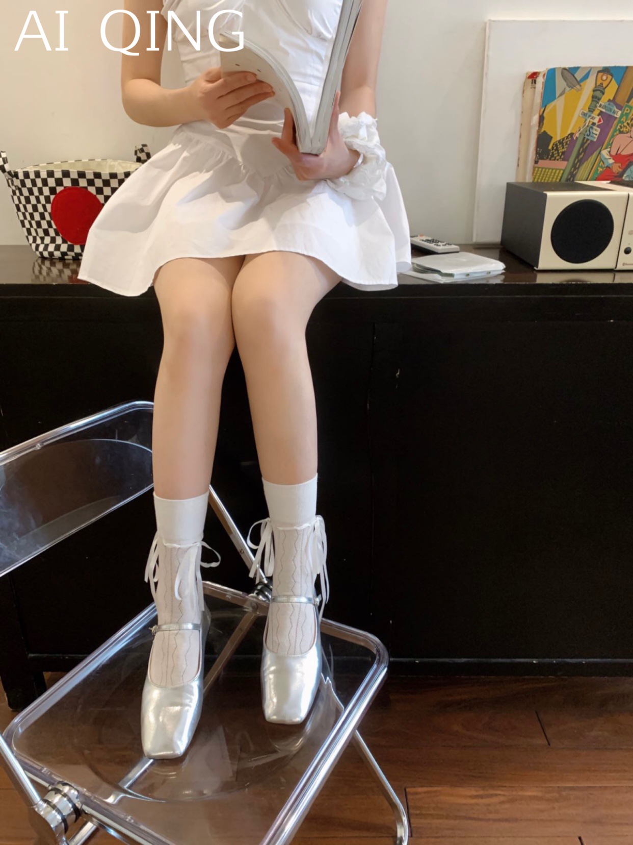 봄과 가을 발레 스타일 중공 스트랩 활 더미 스타킹 JK 리본 여름 짧은 양말 여성용 작은 가죽 신발스토어 가기