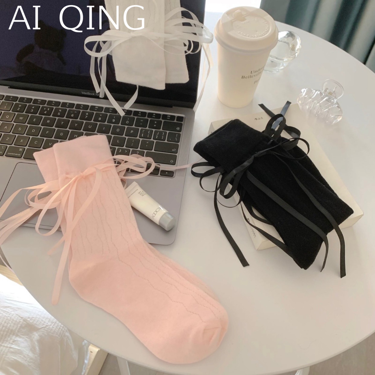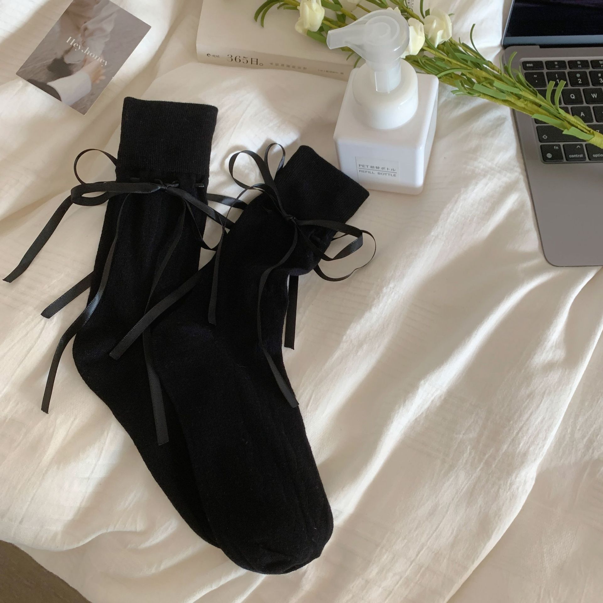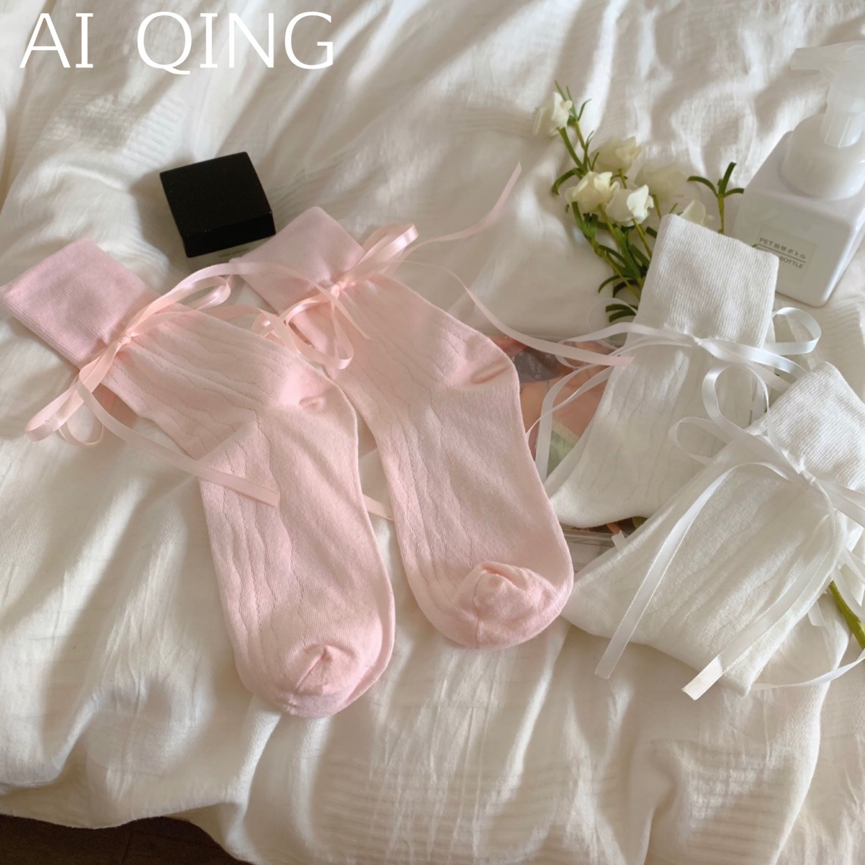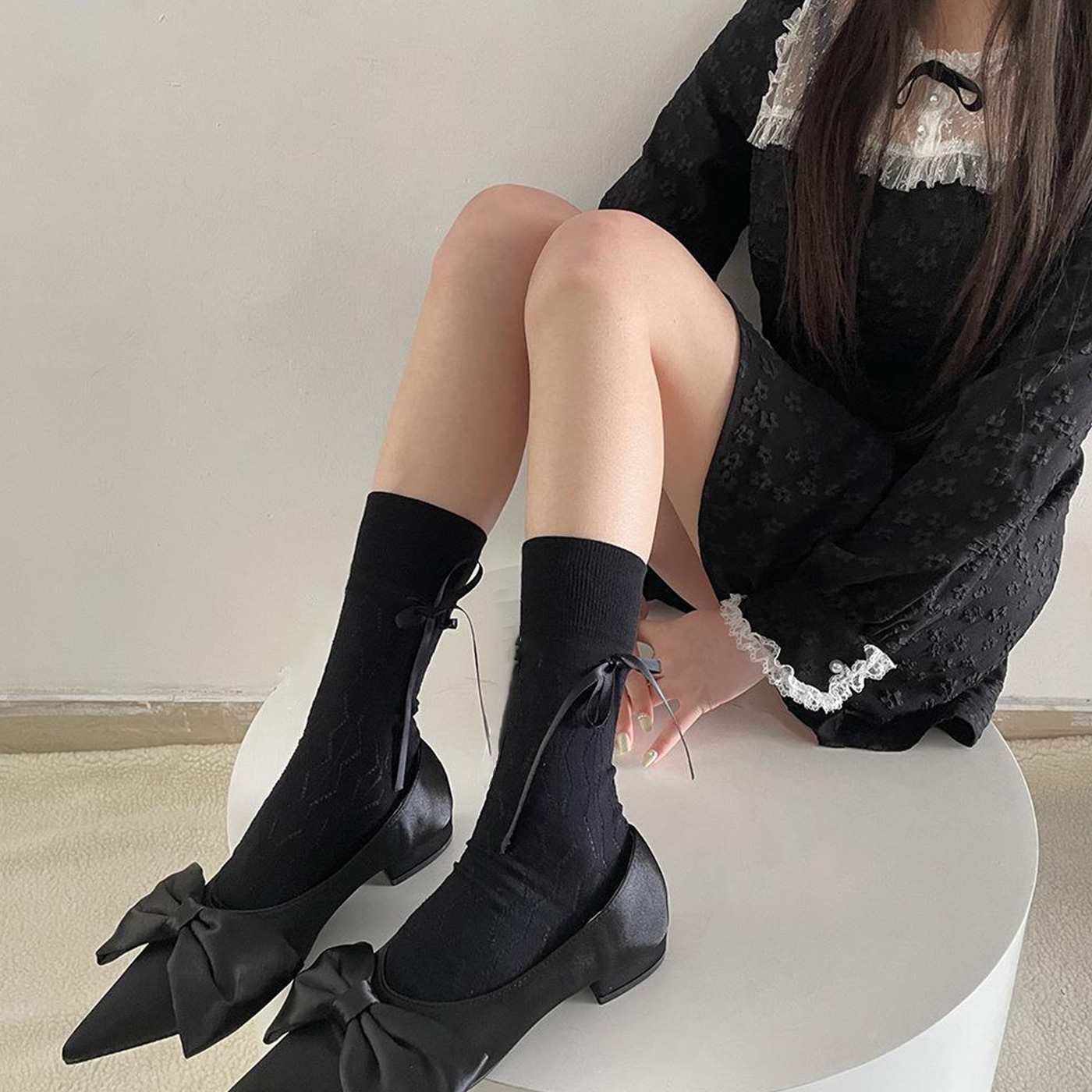 봄과 가을 발레 스타일 중공 스트랩 활 더미 스타킹 JK 리본 여름 짧은 양말 여성용 작은 가죽 신발스토어 가기