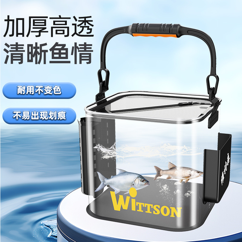 고품질 양동이 낚시 Luya 야생 낚시 접이식 휴대용 물고기 보호 버킷 야외 물고기 상자 투명한 살아있는 물고기 양동이