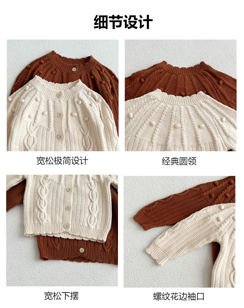 유아용 단색 라운드넥 니트 가디건 남녀 아기 스웨터 코트 모직 상의 한국 스타일 봄 가을 신상품