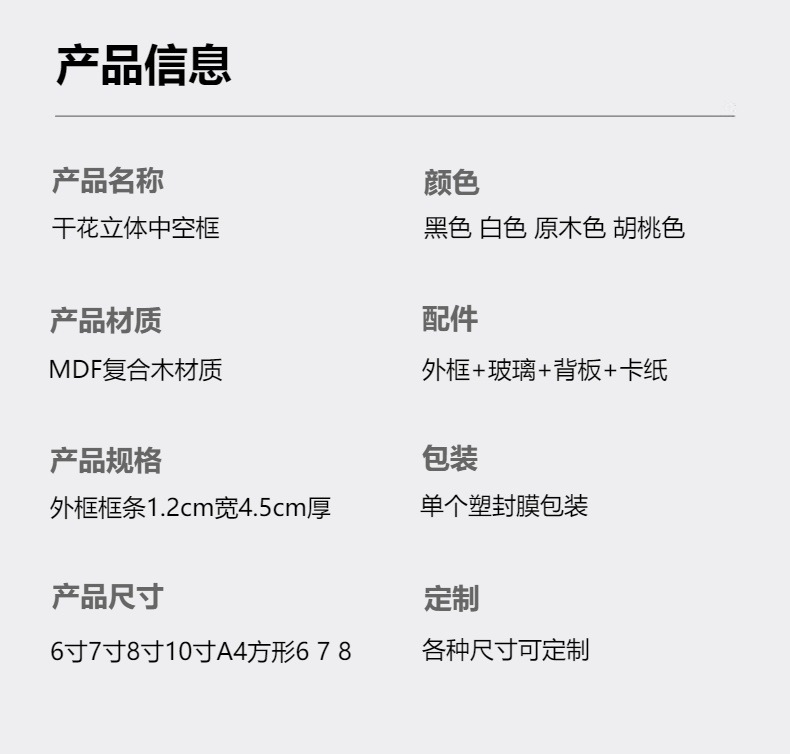 나무 입체 아크릴 중공 액자 드라이플라워 표본 액자 6inch 8inch 대형 크리에이티브 테이블 액자 도매스토어 가기