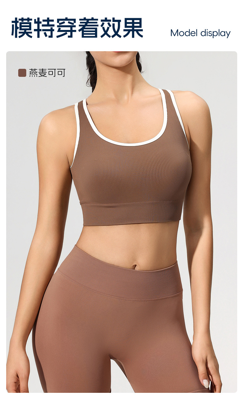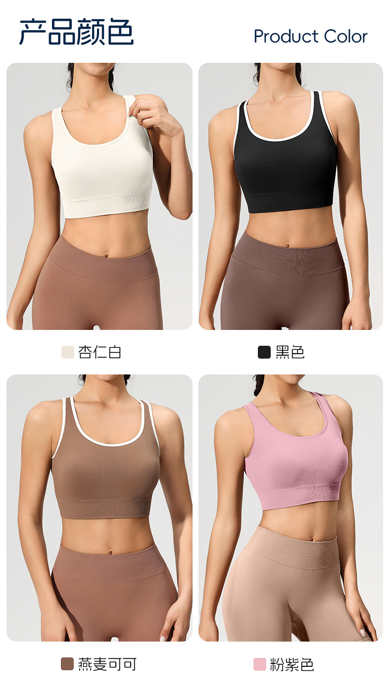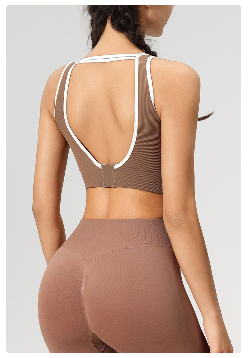 跨境健身背心女三排搭扣防震瑜伽服文胸固定杯一体式露背运动内衣
