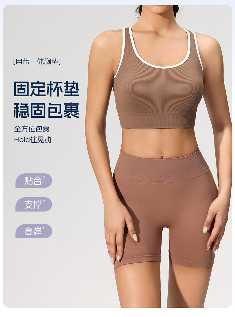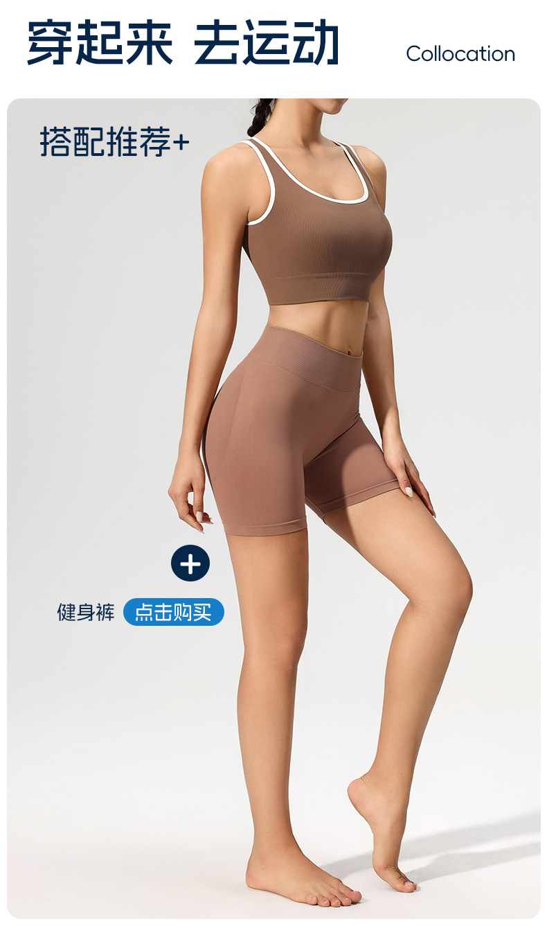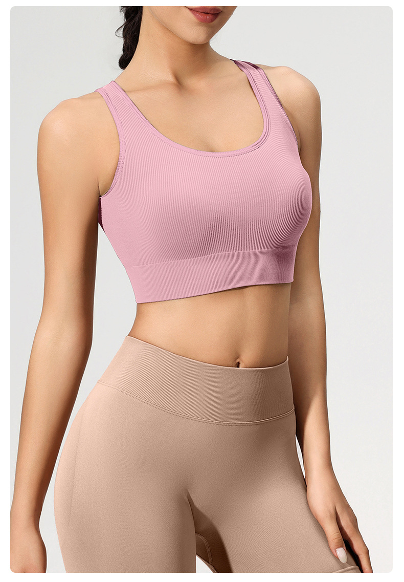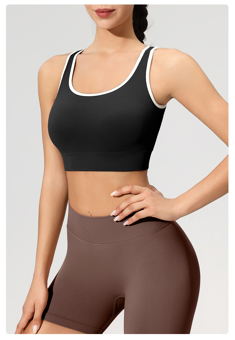跨境健身背心女三排搭扣防震瑜伽服文胸固定杯一体式露背运动内衣