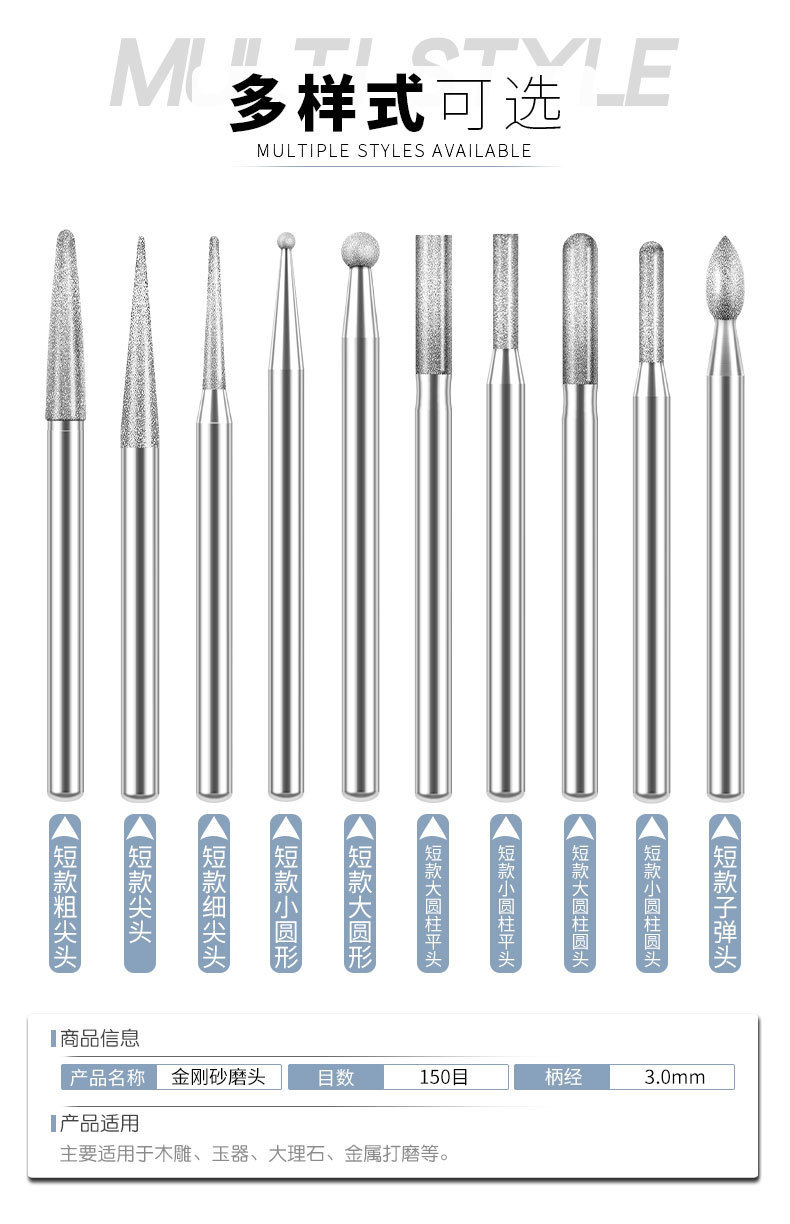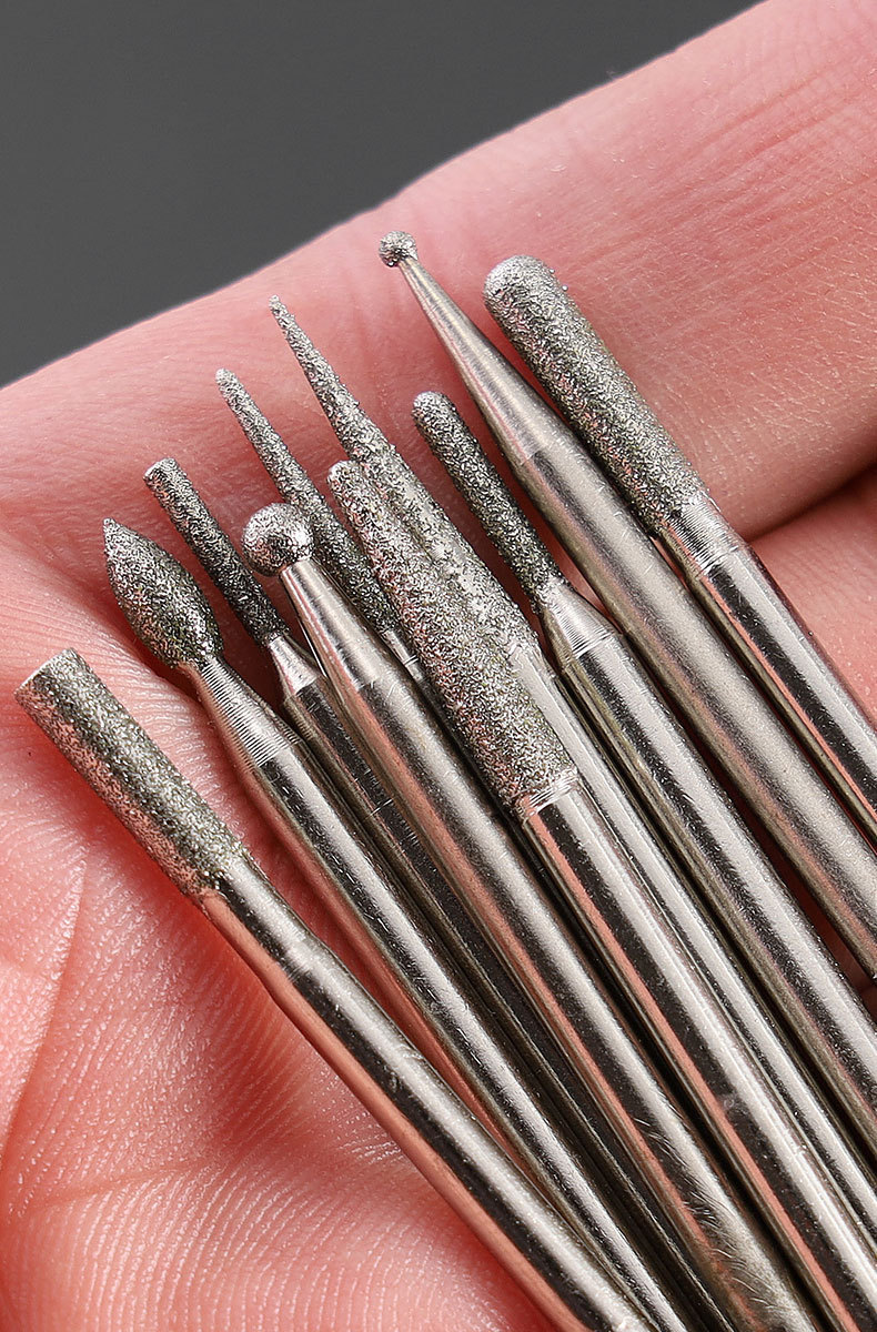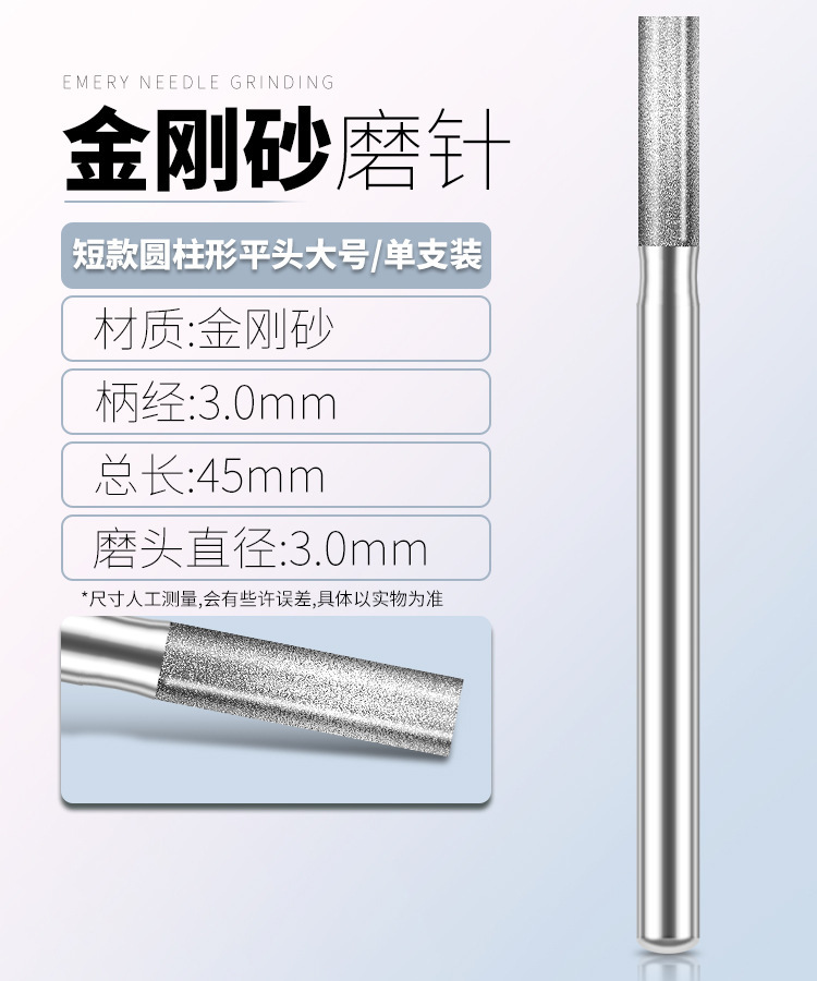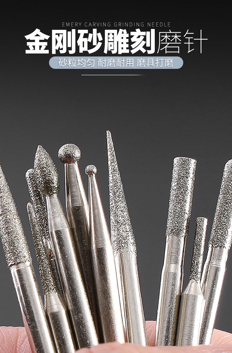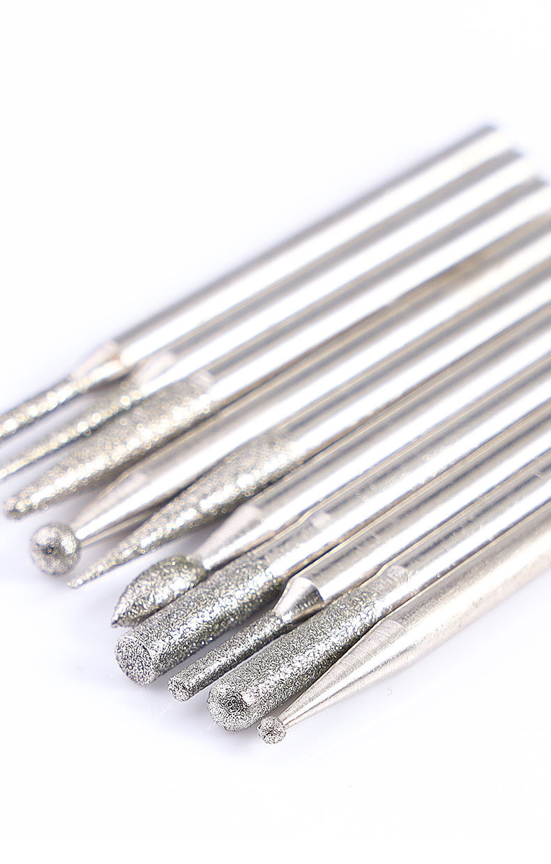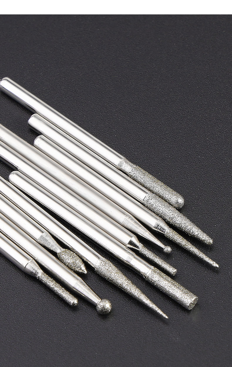 다이아몬드 연삭 헤드 3mm 세트 원통형 합금 옥 조각 도구 그라인딩 에머리 전기 연삭 공압 바늘 바