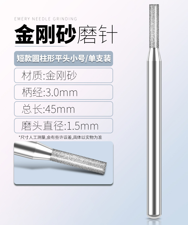 • 짧고 작은 원통형 플랫 헤드 연삭 바늘