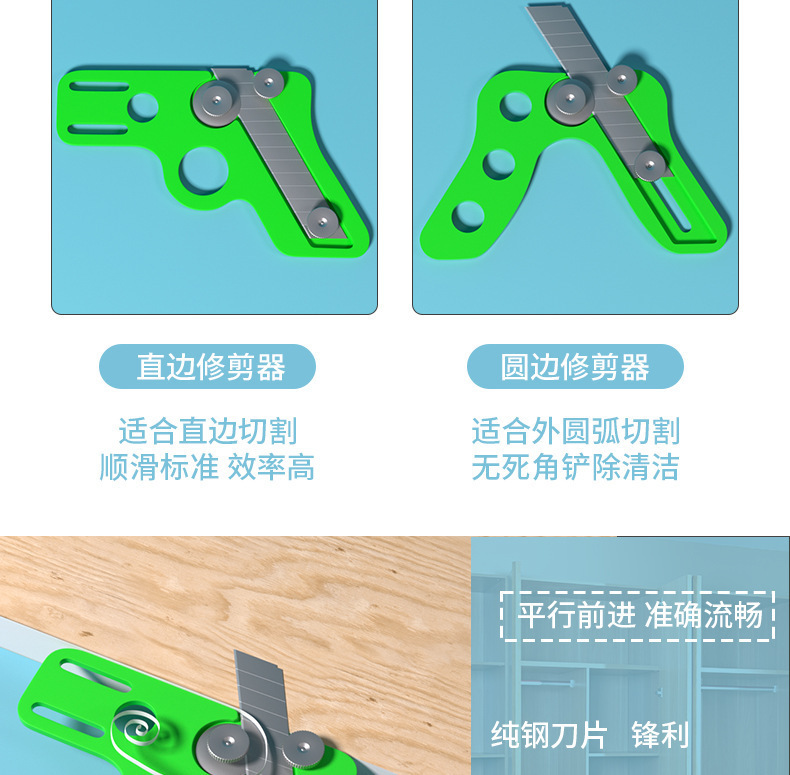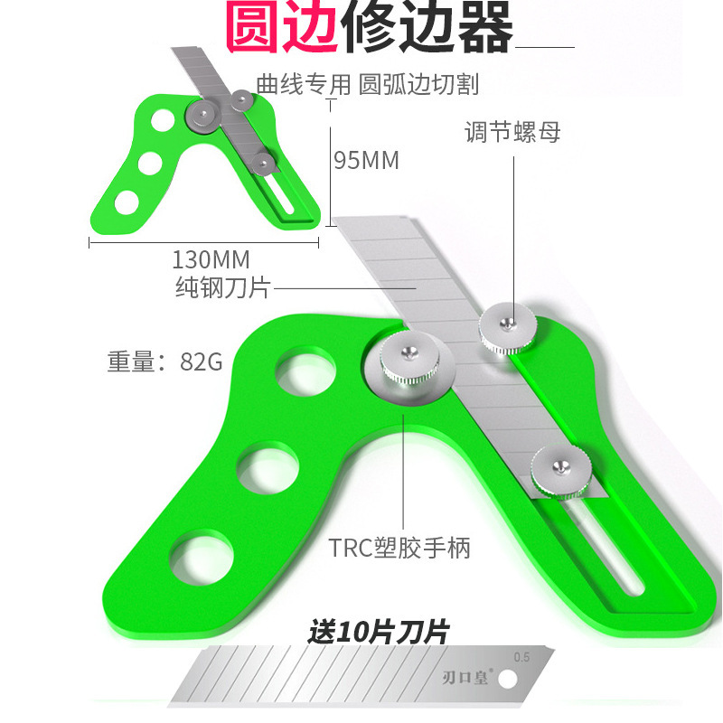 • 직선 모서리가 있는 엣지 밴딩 트리머에는 10개의 블레이드가 함께 제공됩니다.