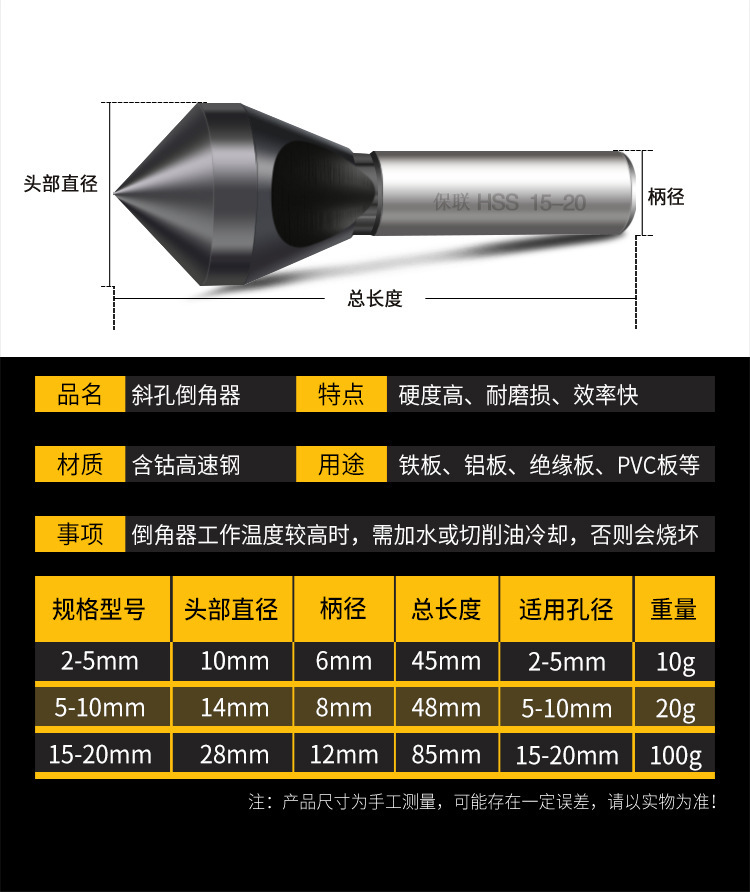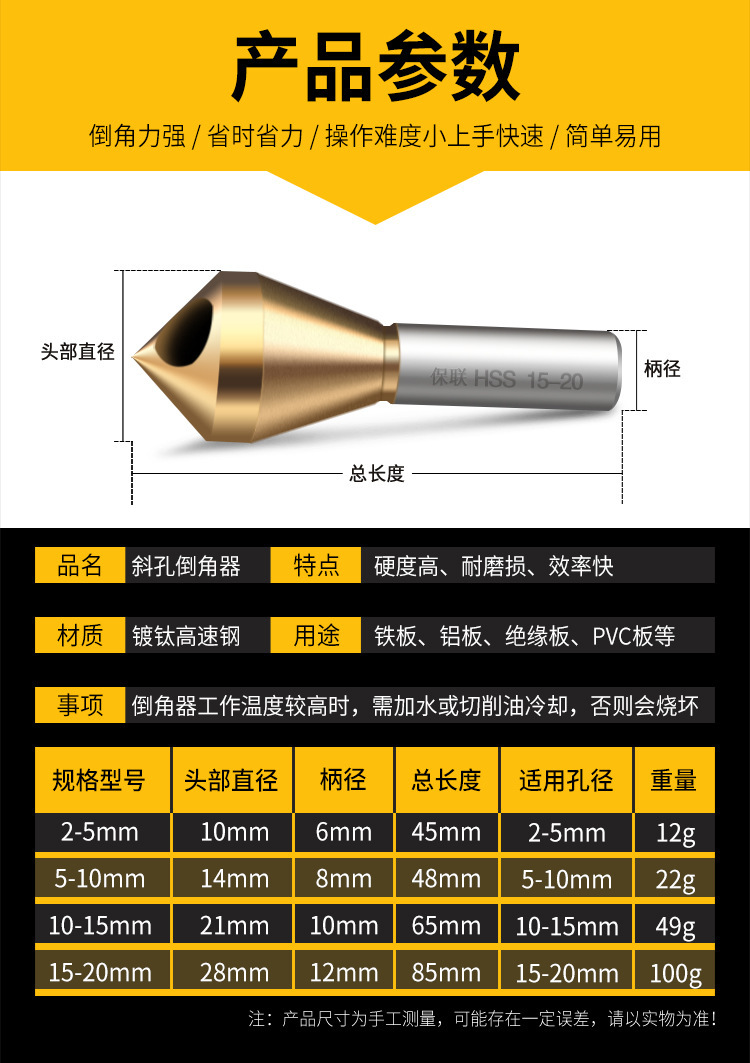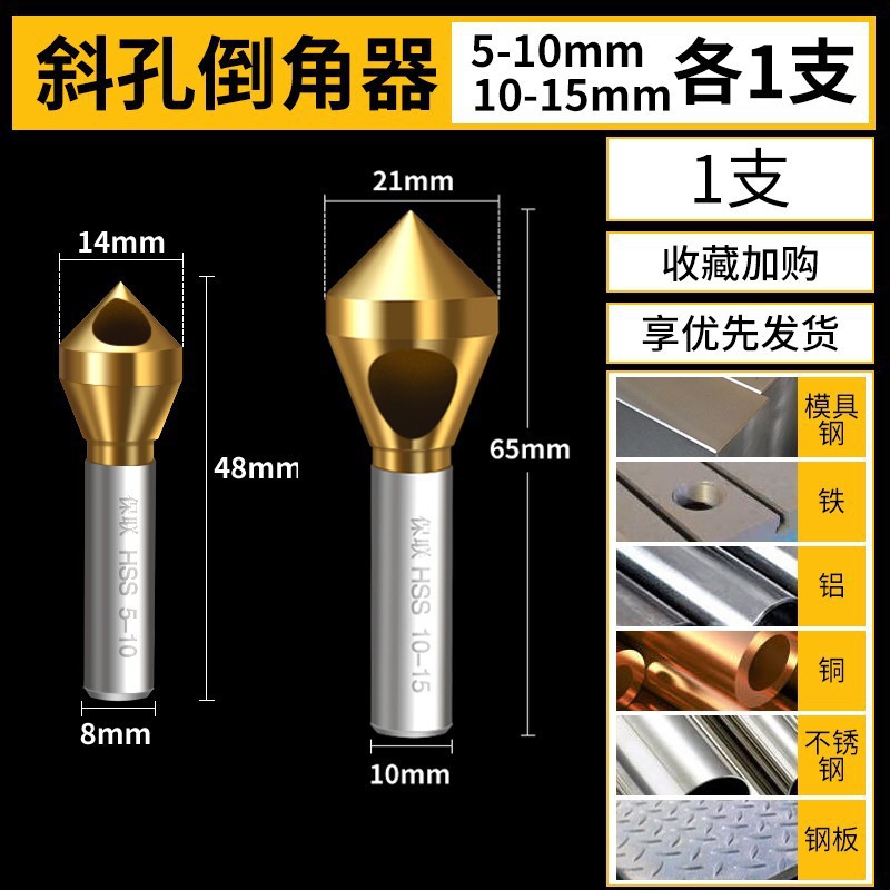 • 6542 티타늄 도금 경사 구멍 모따기(10-15mm/15-20mm) 각 1개