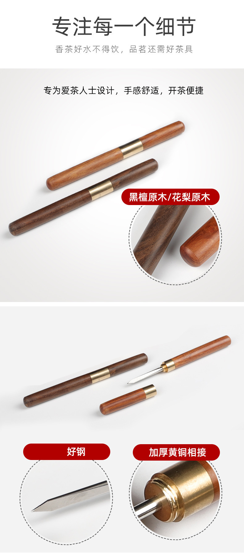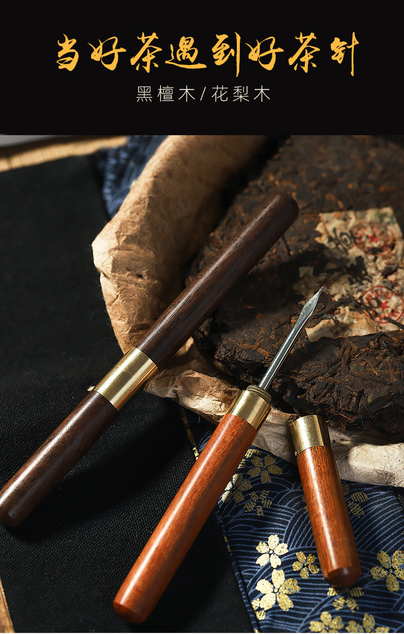 특별 제공 Pu'er 차 칼 흑단 로즈 우드 수제 구리 홍차 칼 스테인레스 스틸 차 나이프 차 바늘 차 콘