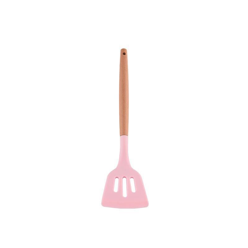 실리콘 주방용품 나무 손잡이 누설 삽 주방 도구 다채로운 실리콘 삽 비 스틱 삽 가정용 실리콘 삽