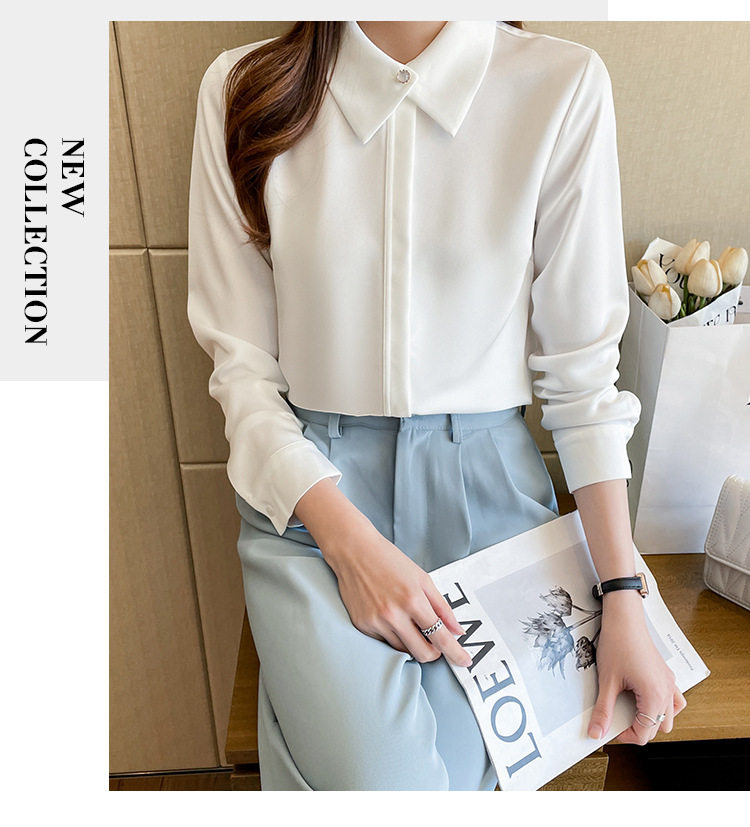 전문 시폰 셔츠 여성용 긴팔 새 2024 가을 패션 우아한 셔츠 쉬폰 셔츠 아우터 착용스토어 가기