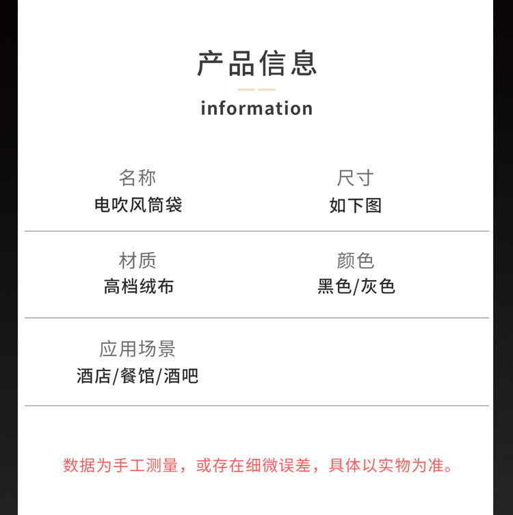 호텔 호텔 헤어 드라이어 가방 블랙 벨벳 백 헤어 드라이어 보관 가방 방진 홈스테이 인 주문 로고 간단스토어 가기