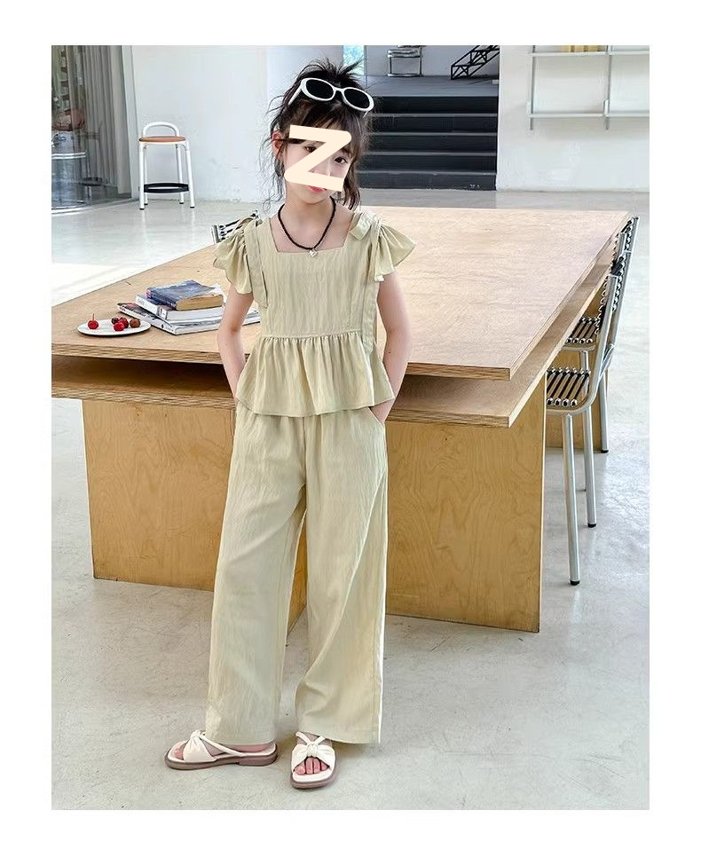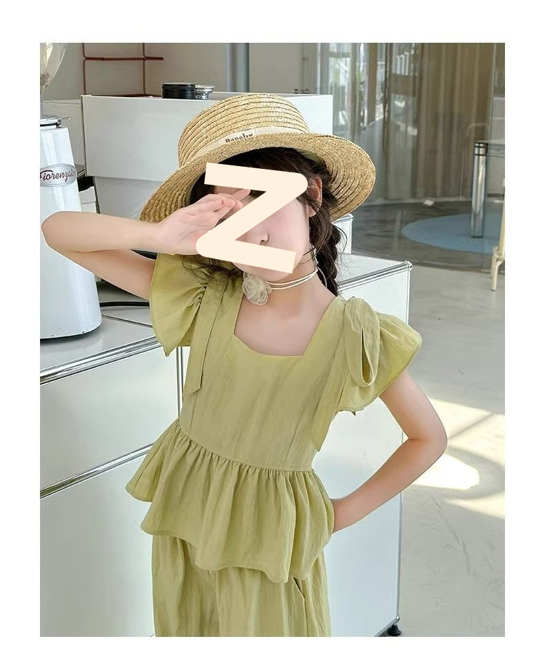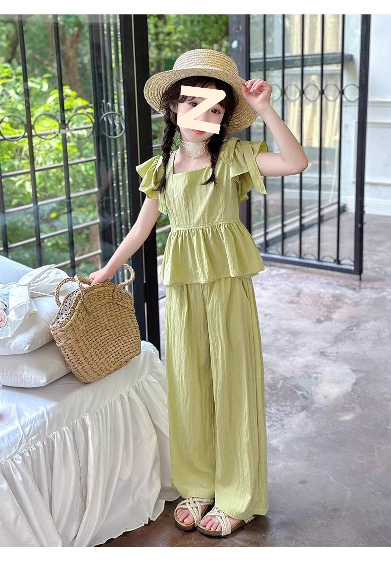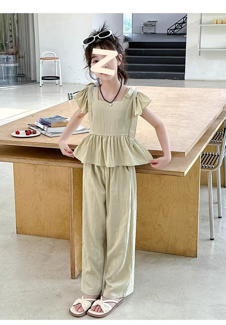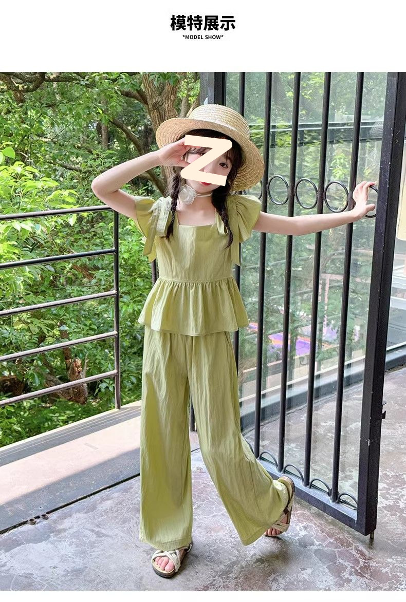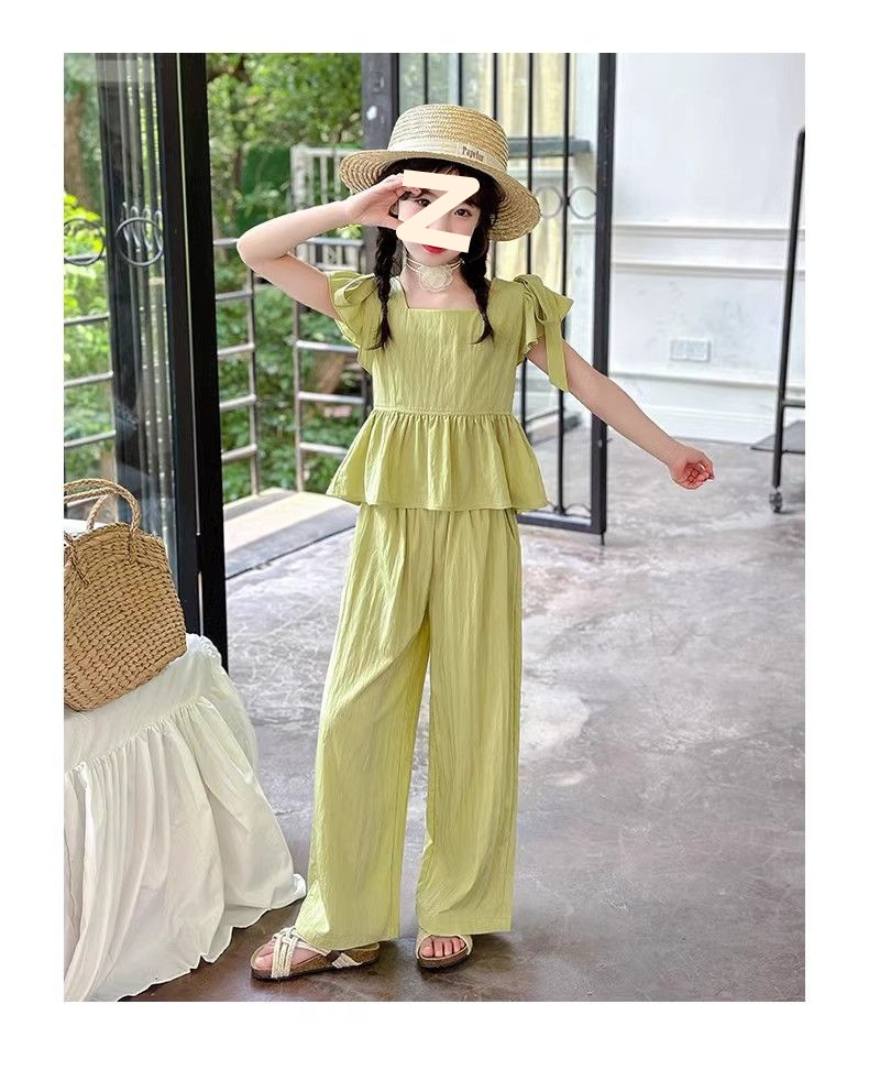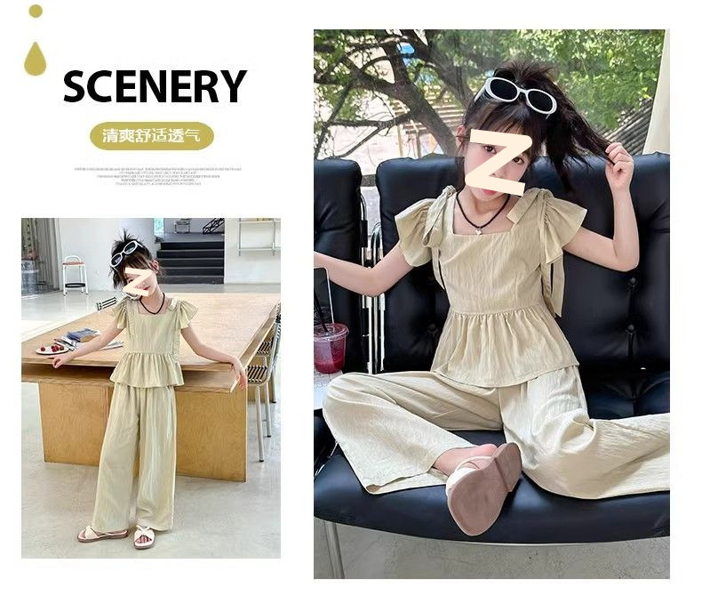 소녀 여름 착용 얇은 시폰 셔츠 세트 2024 새로운 스타일 중대형 어린이 우아한 여성 여성 최고 투피스 세트스토어 가기
