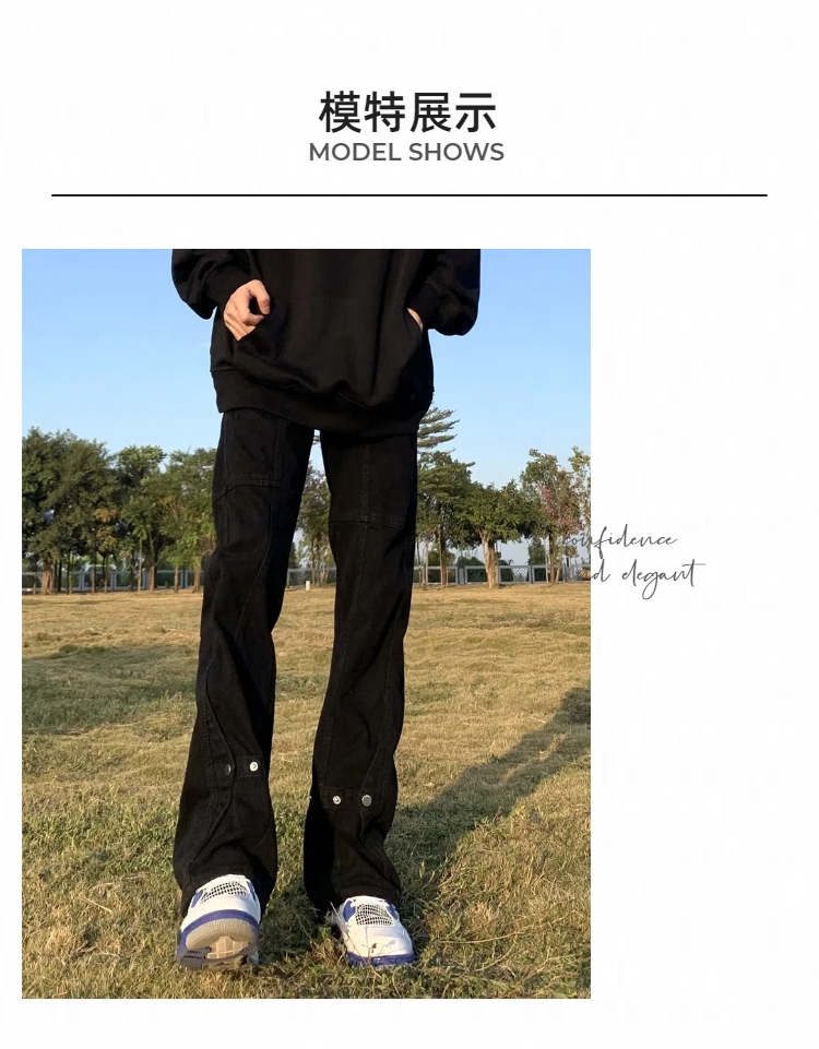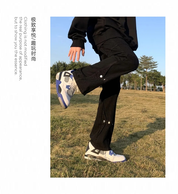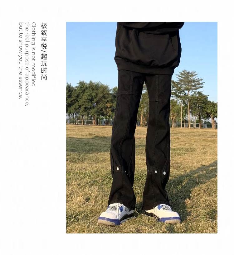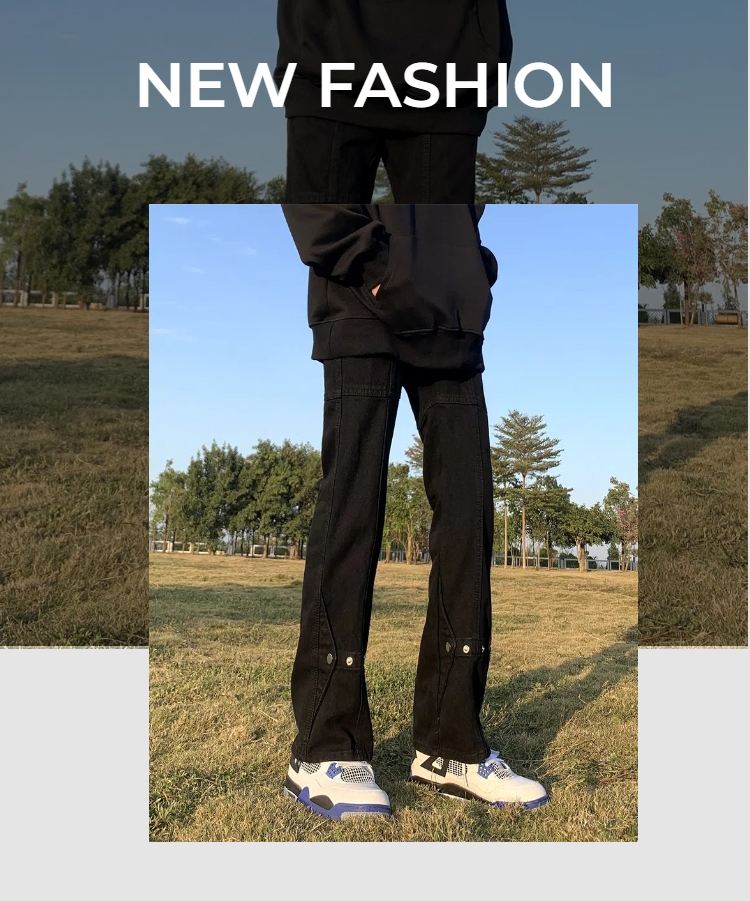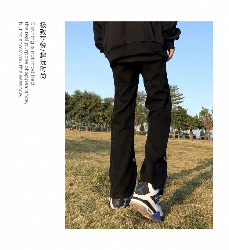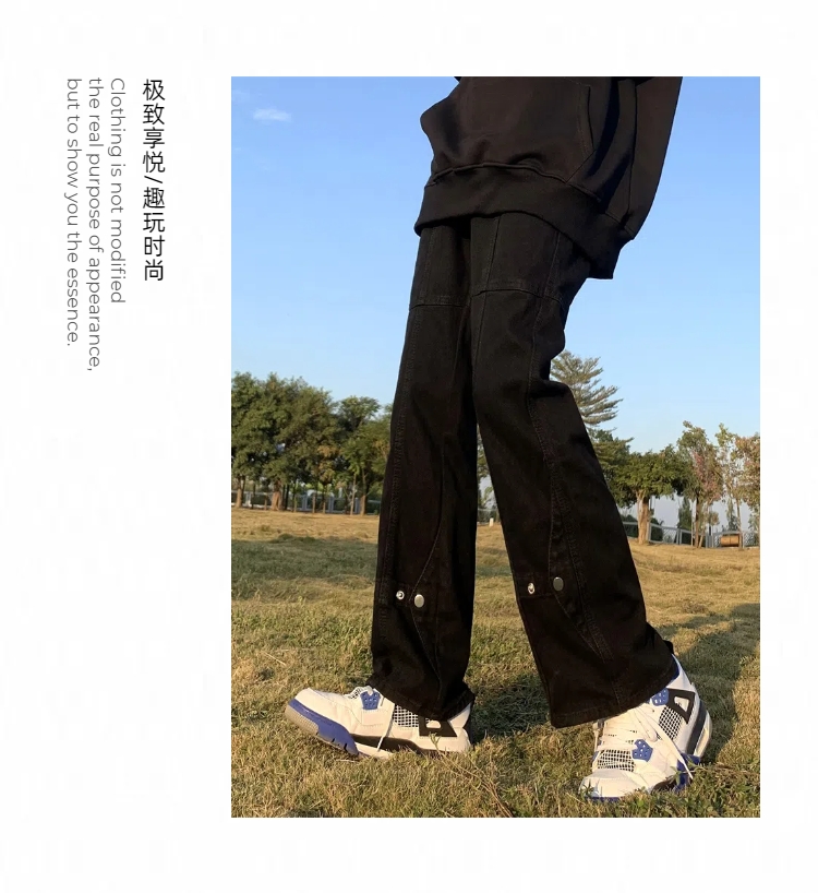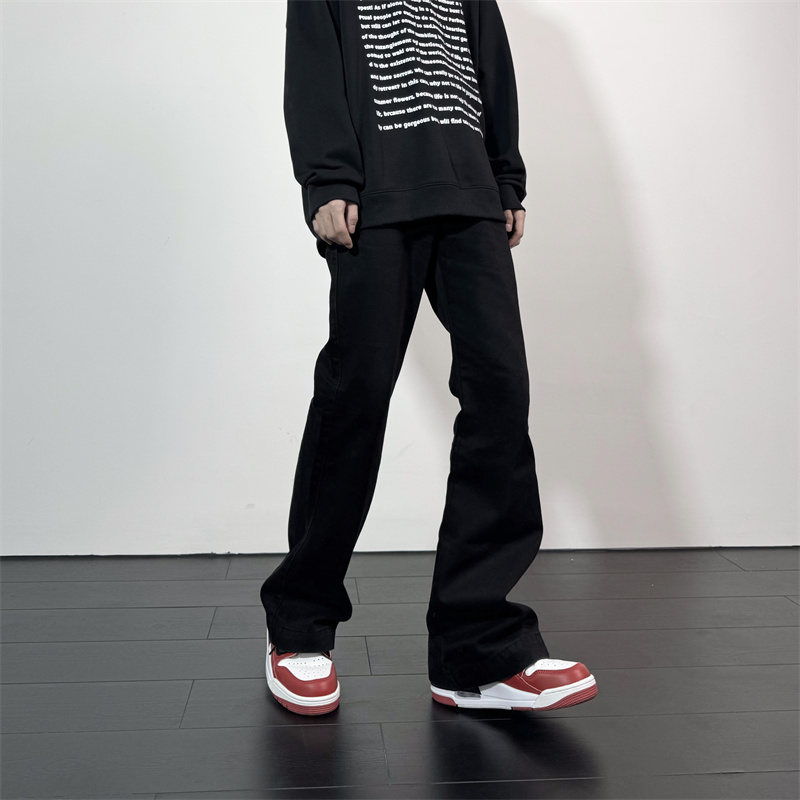 아메리칸 스타일 하이 스트리트 바이브 스타일 블랙 브레스트 청바지 남성 봄 트렌디 브랜드 루즈 스트레이트 스태킹 바지스토어 가기