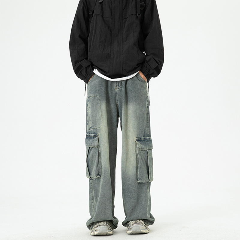 아메리칸 스타일 툴링 청바지 남성용 가을 오래 된 느슨한 다리 바지 유행 브랜드 내 레트로 와이드 레그 롱 바지