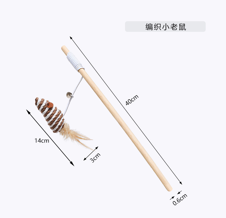 고양이 장난감 통나무 손잡이 고양이 꼬리 밧줄면과 대마 깃털 벨 대화 형 고양이 장난감 고양이 장난감