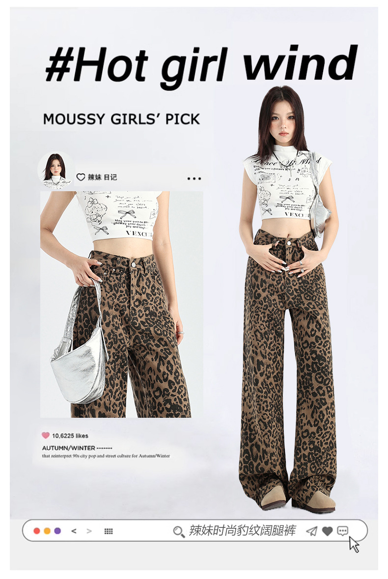 레오파드 프린트 와이드 레그 청바지 여성용 2025 가을 겨울 신상 하이웨이스트 아메리칸 스타일 루즈핏 슬림핏 벨벳 스트레이트 팬츠스토어 가기