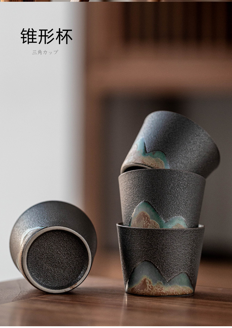 먼 산 검은 도자기 차 컵 세라믹 손으로 그린 야마가타 차 세트 쿵푸 작은 티 컵 선 싱글 컵 마스터 컵 티컵