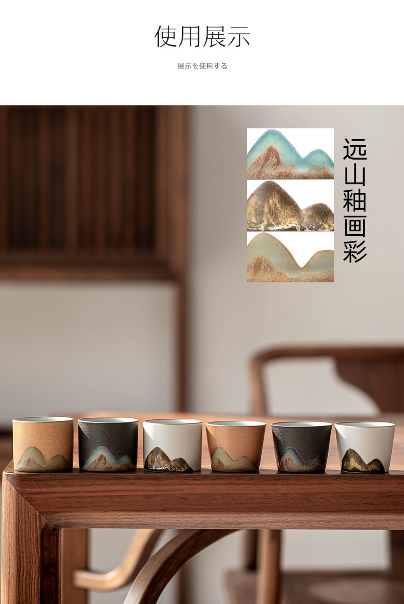 먼 산 검은 도자기 차 컵 세라믹 손으로 그린 야마가타 차 세트 쿵푸 작은 티 컵 선 싱글 컵 마스터 컵 티컵스토어 가기