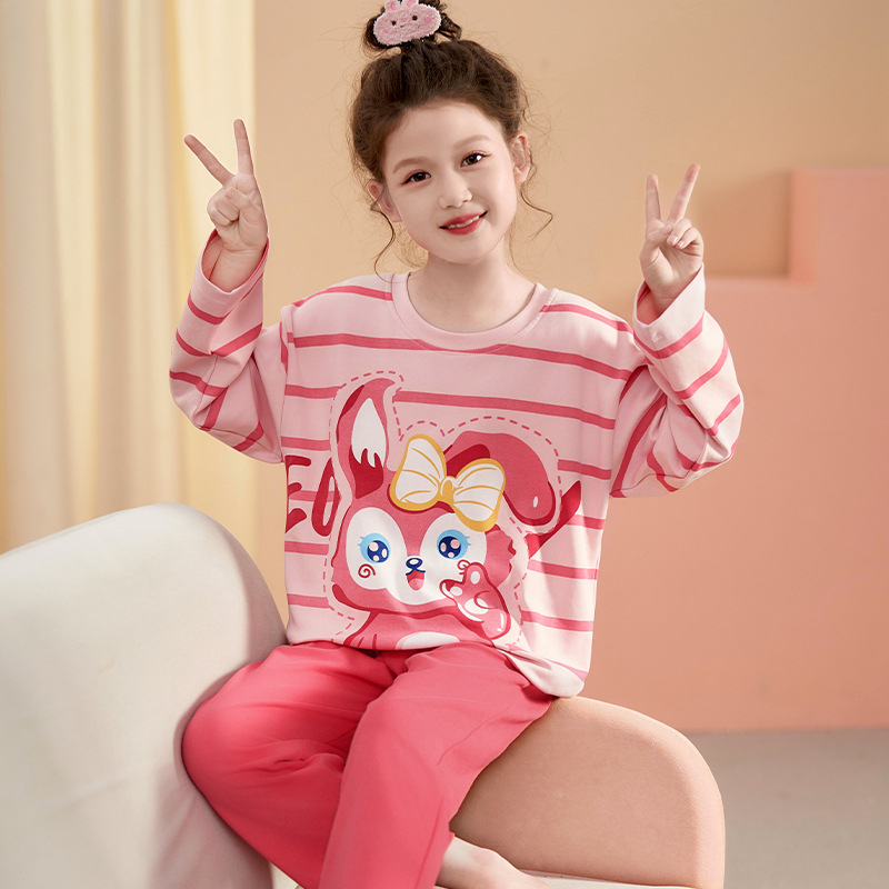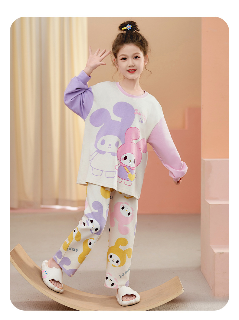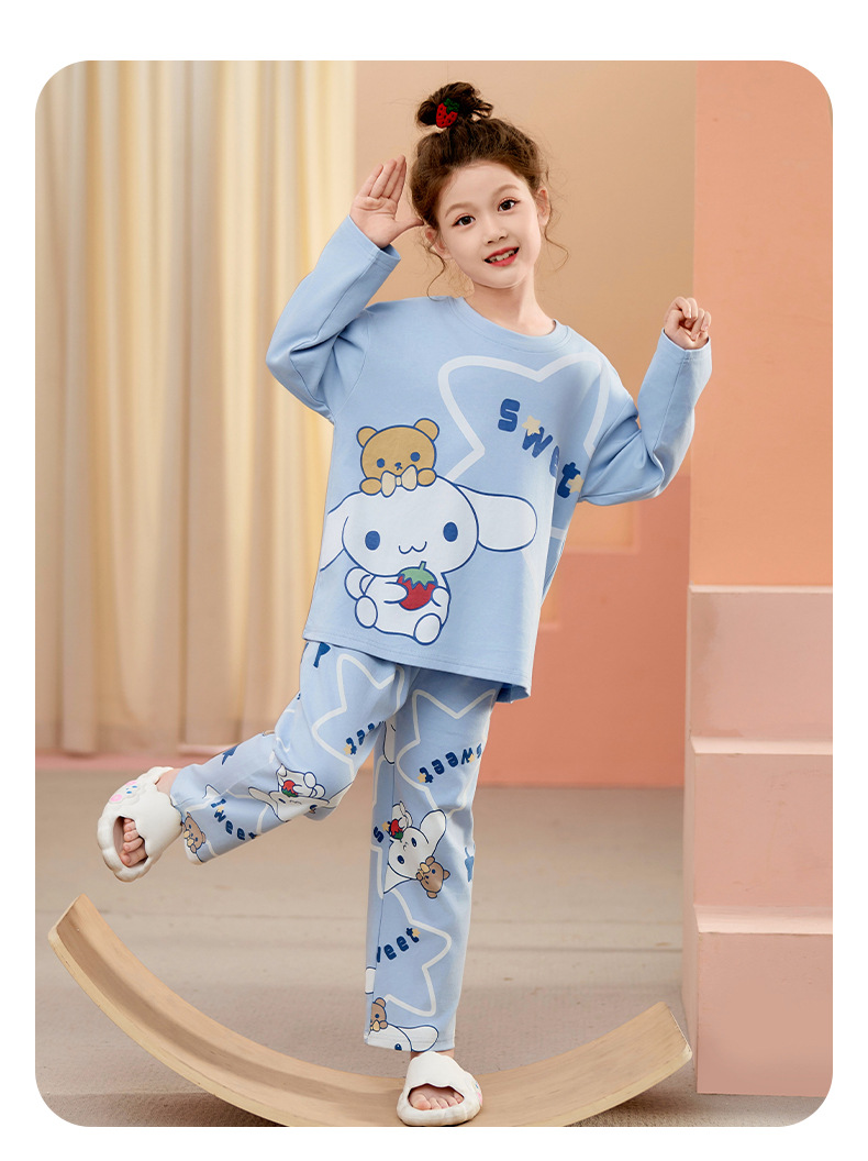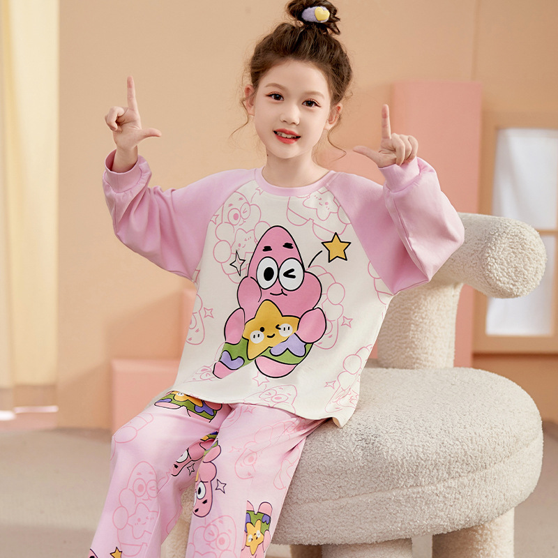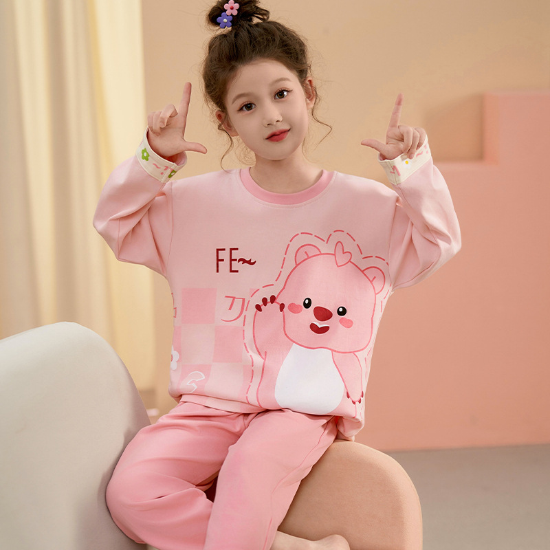 소녀 잠옷 2024 년 새 여름 순면 얇은 소녀 아기 가을 에어컨 홈 옷