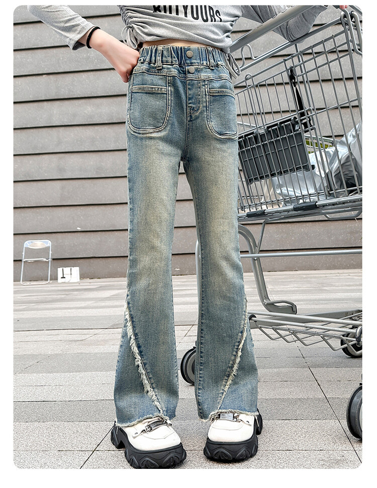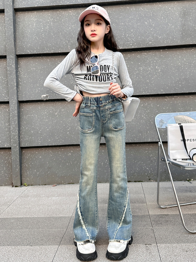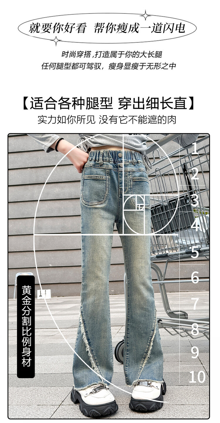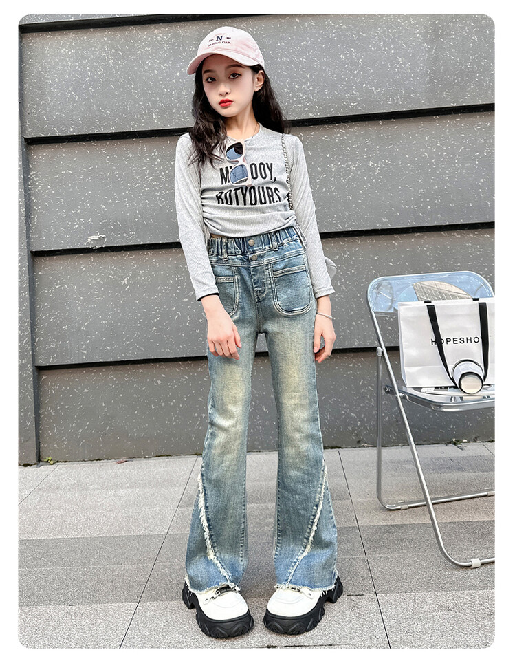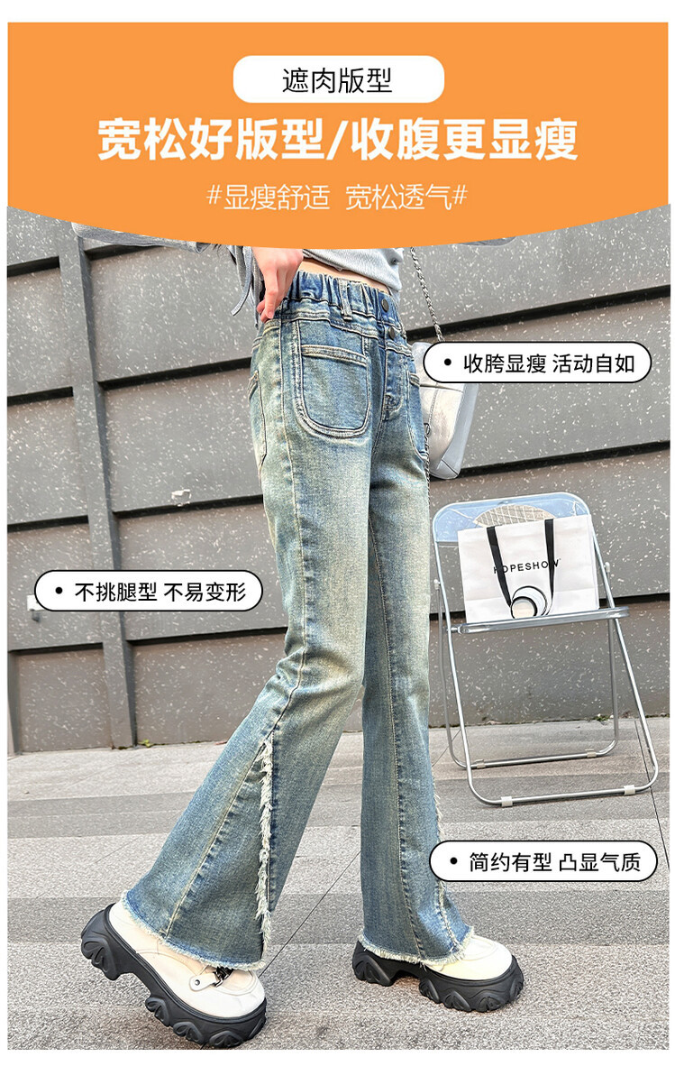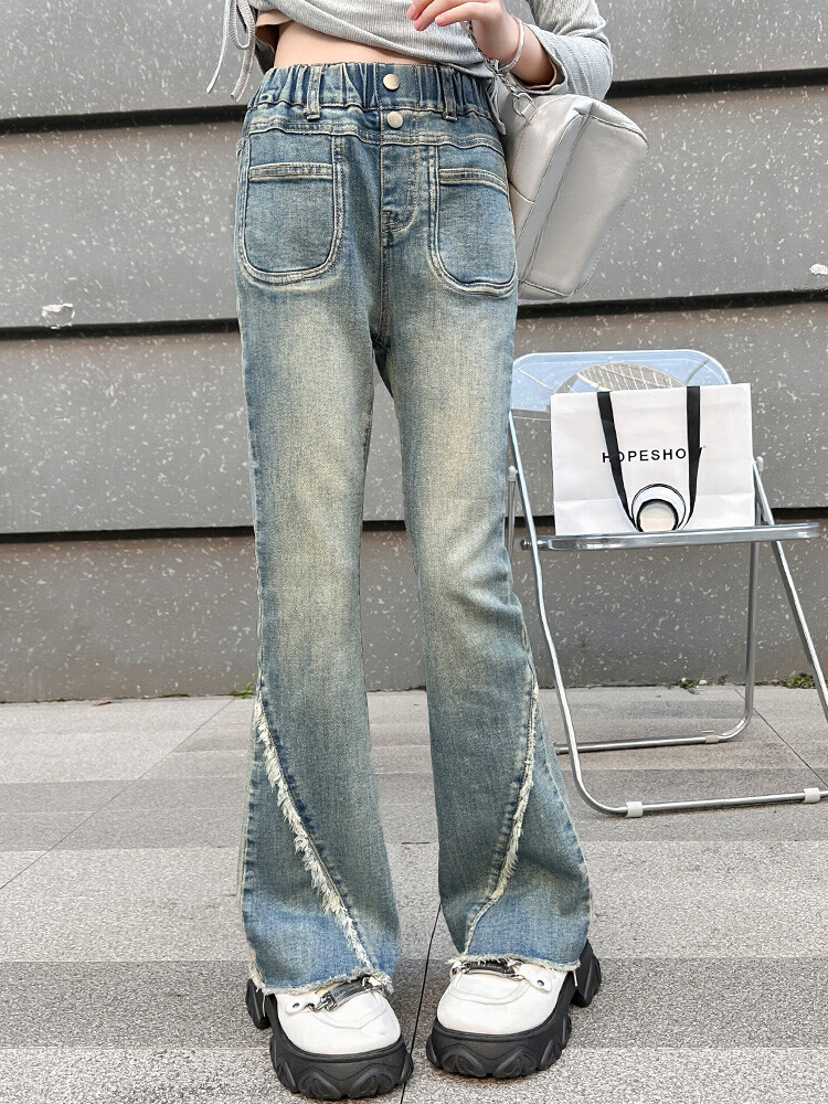소녀 청바지 24 새로운 스타일 중대형 어린이 봄 및 가을 바지 소녀 올 매치 슬림 핏 플라 드 바지 대외 무역 어린이 바지스토어 가기