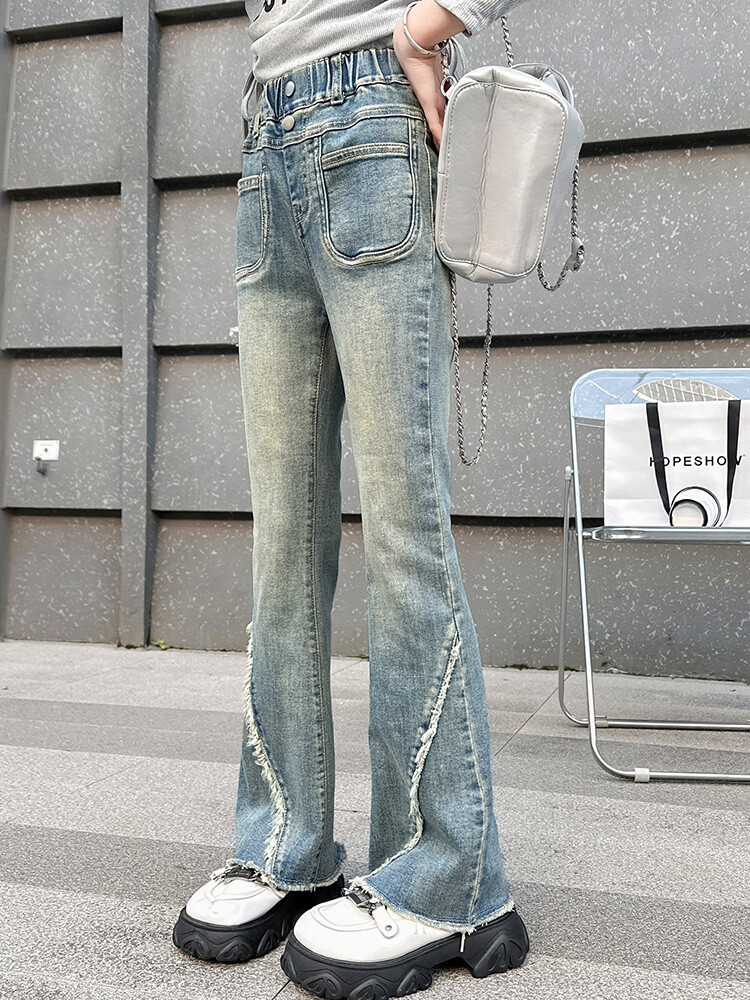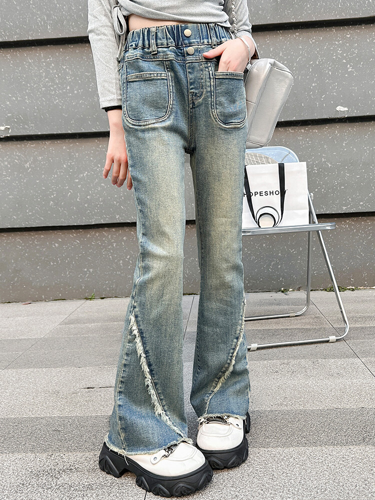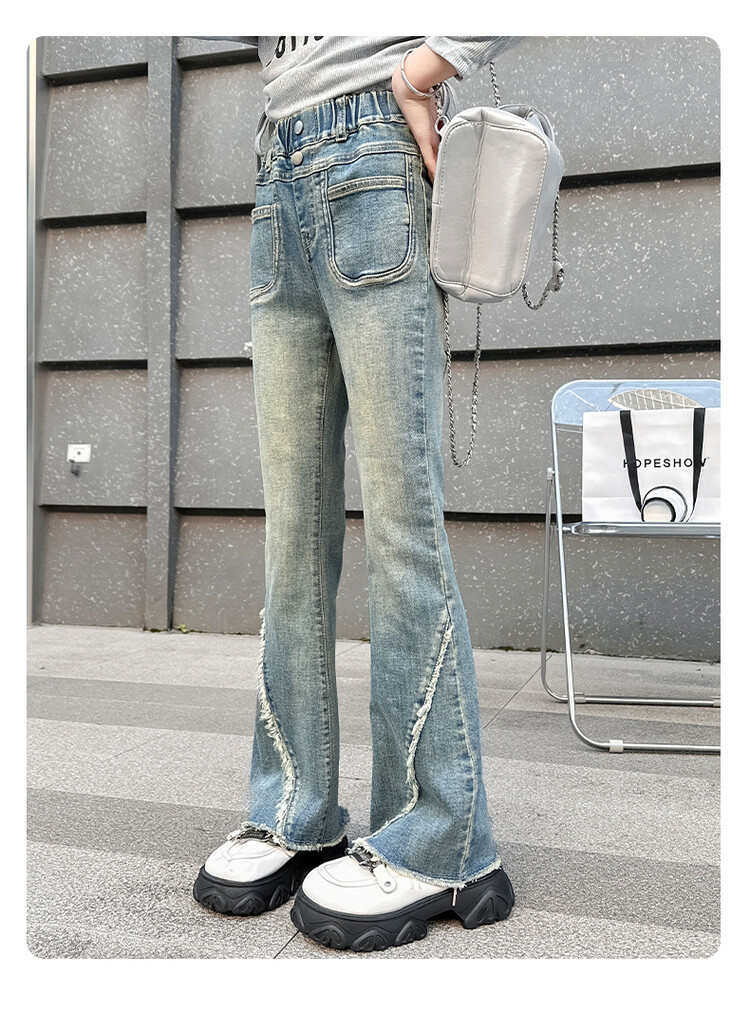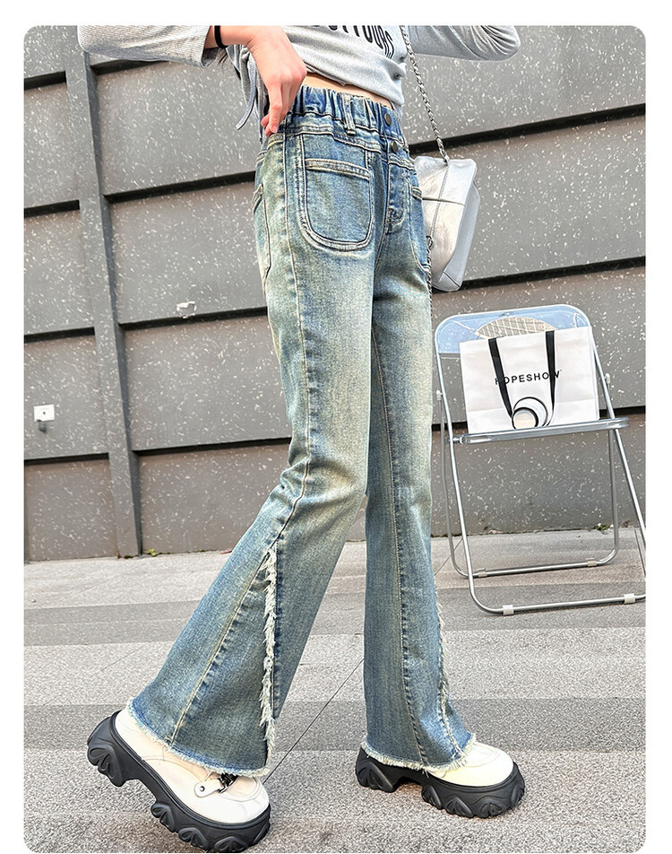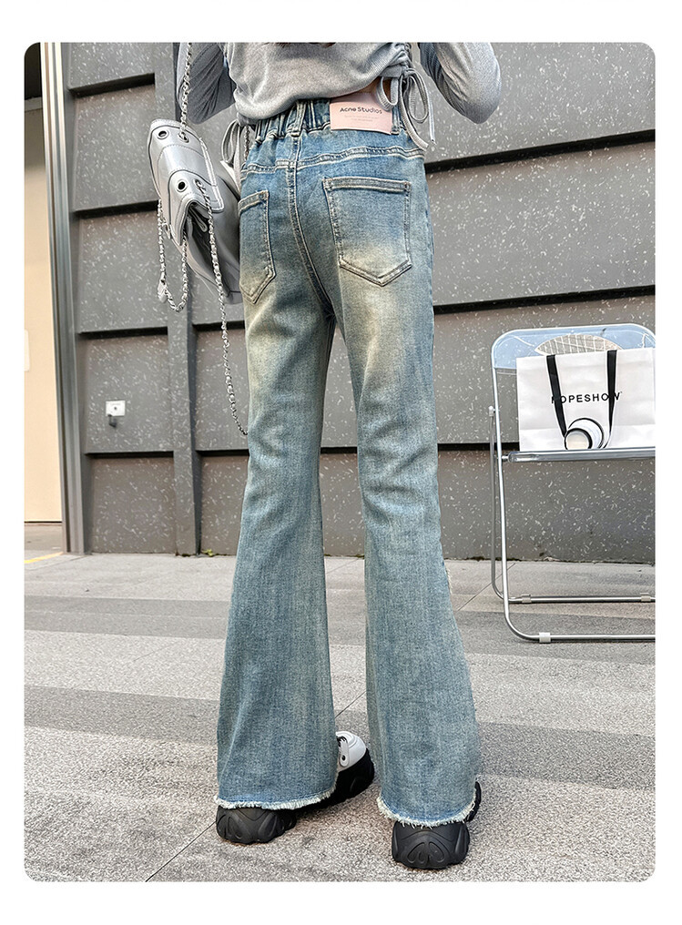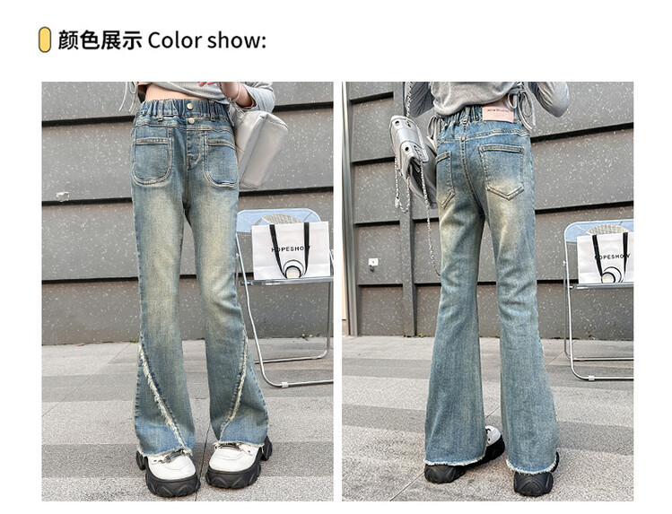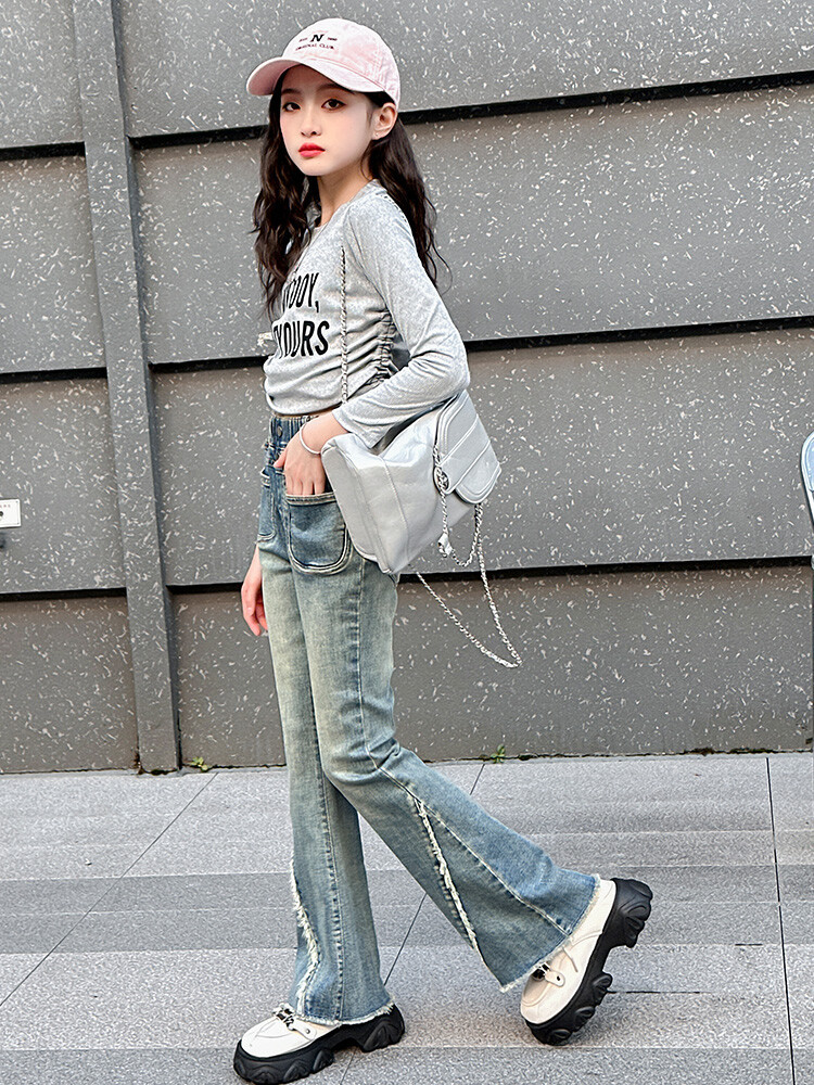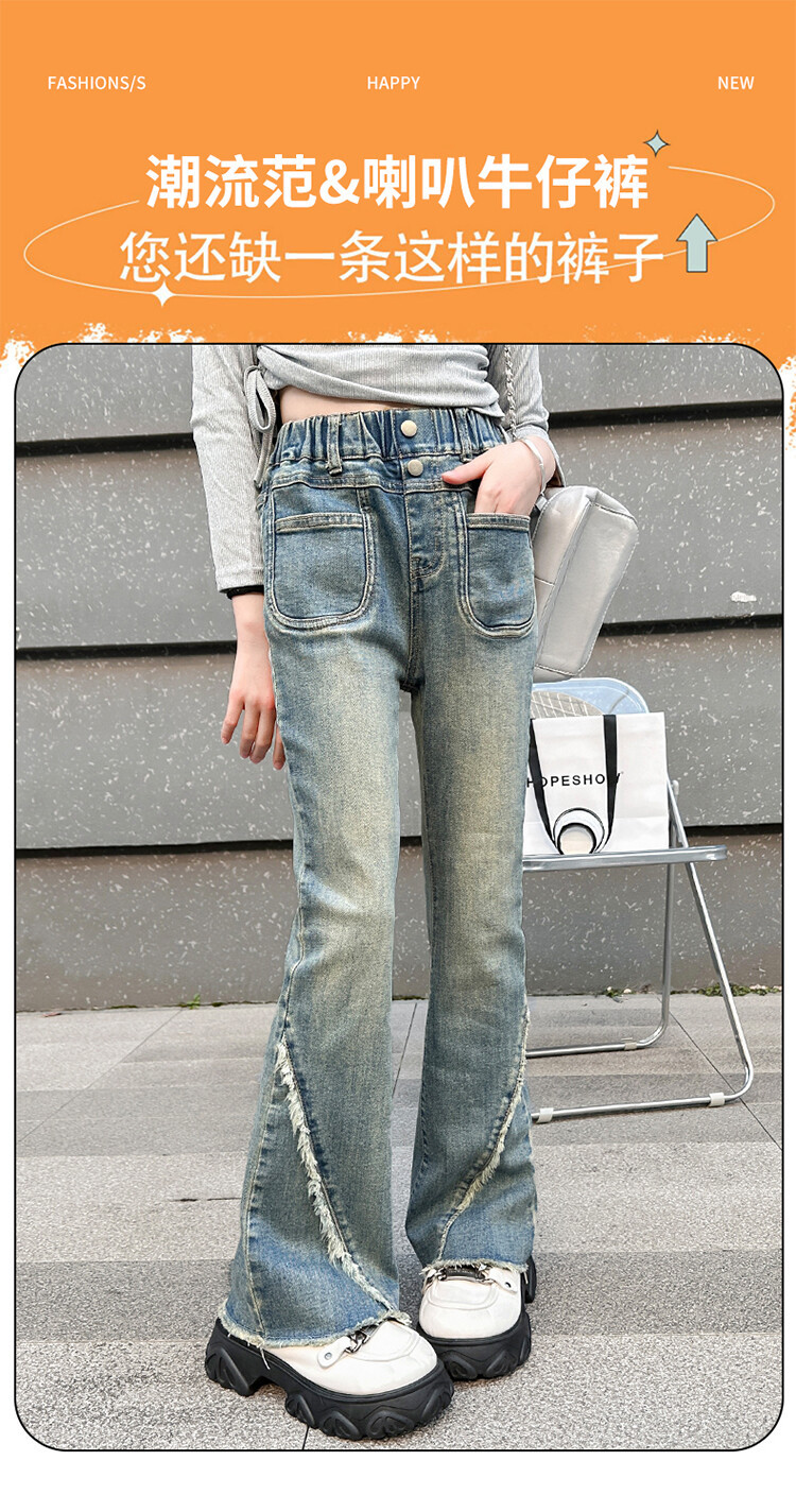 소녀 청바지 24 새로운 스타일 중대형 어린이 봄 및 가을 바지 소녀 올 매치 슬림 핏 플라 드 바지 대외 무역 어린이 바지스토어 가기