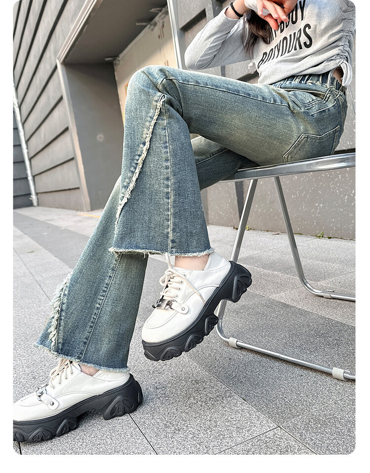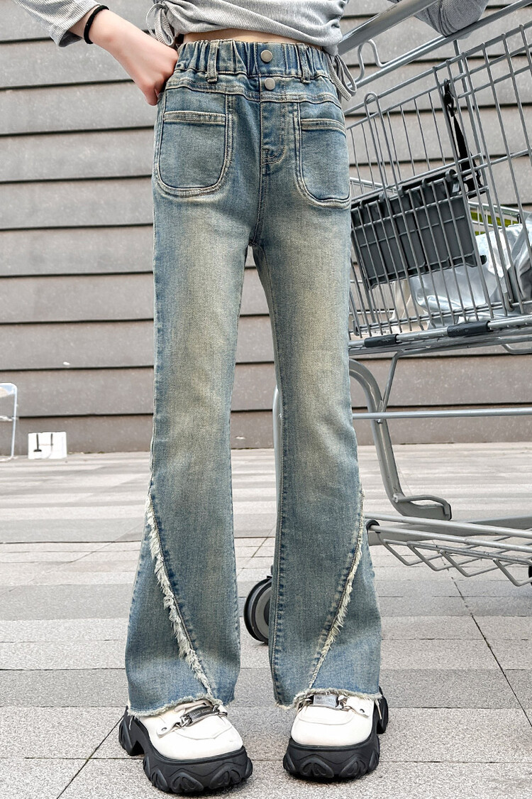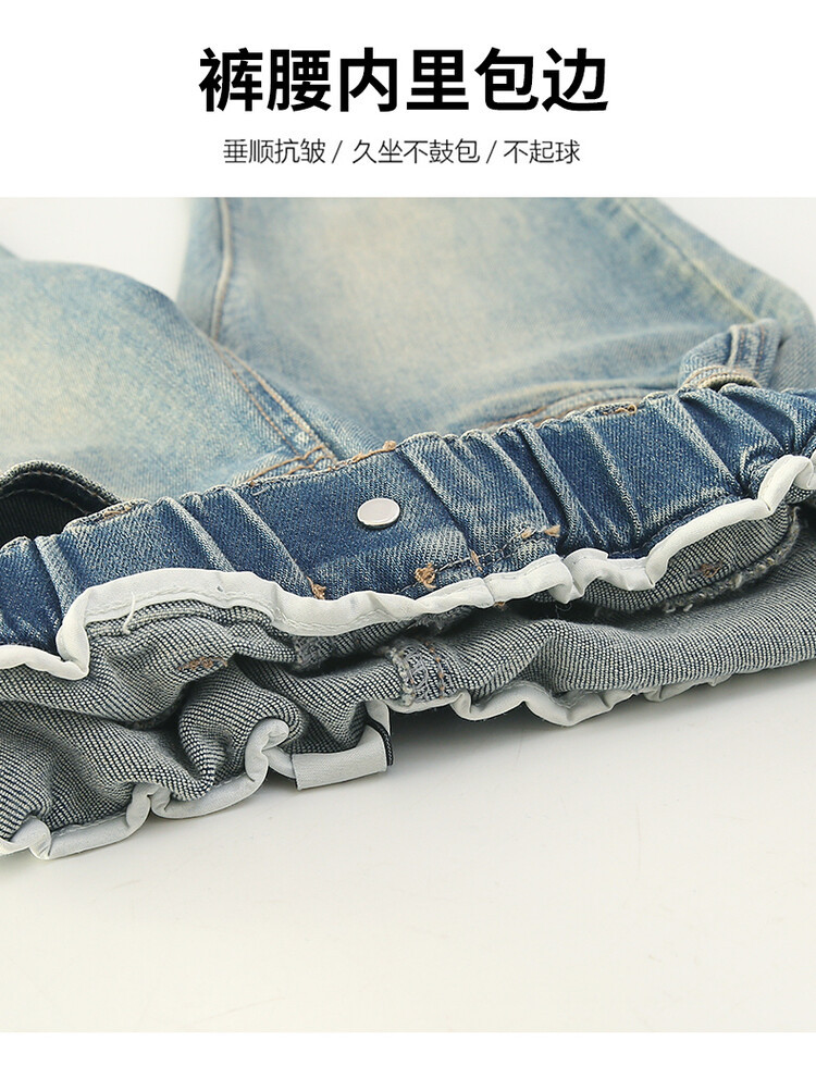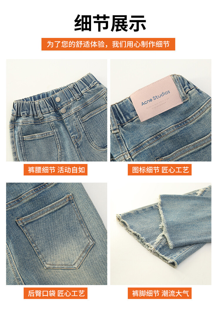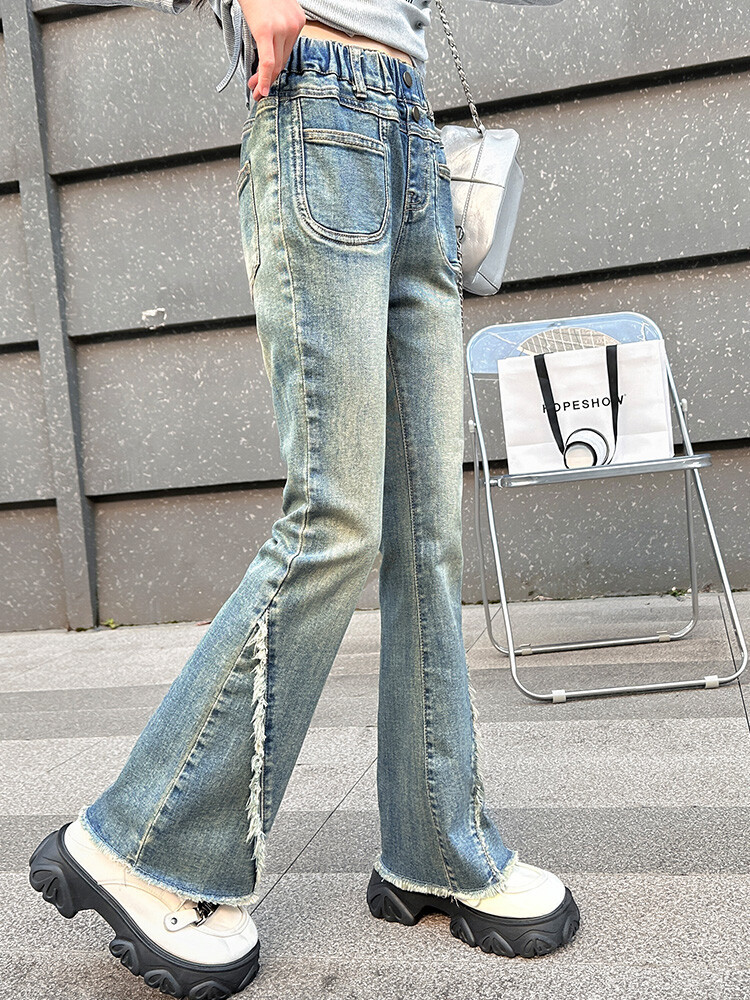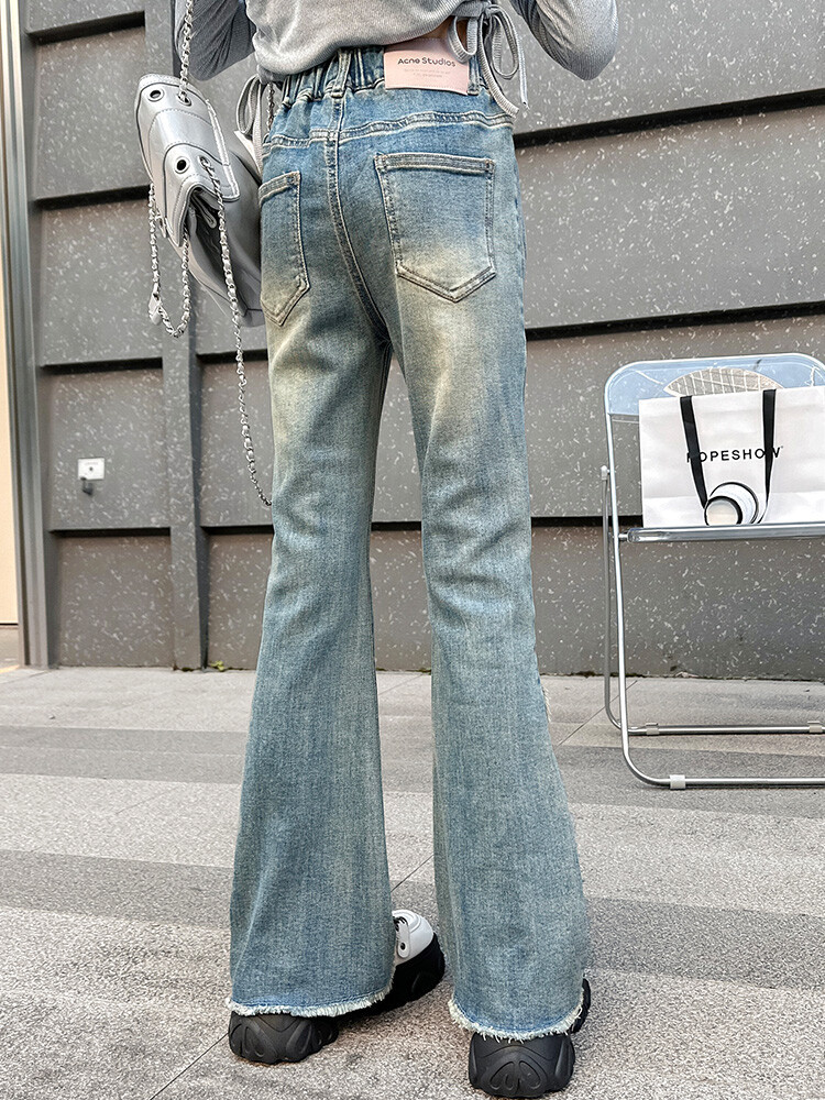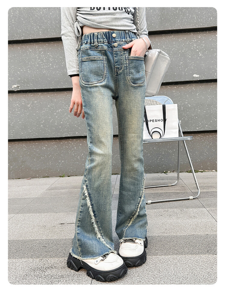 소녀 청바지 24 새로운 스타일 중대형 어린이 봄 및 가을 바지 소녀 올 매치 슬림 핏 플라 드 바지 대외 무역 어린이 바지스토어 가기