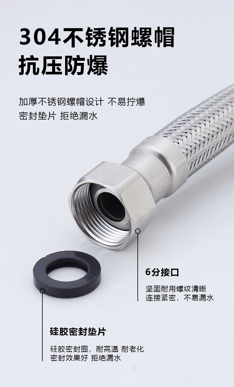 304 스테인레스 스틸 대형 흐름 대담한 폭발 방지 물 입구 파이프 6 포인트/4 포인트 금속 꼰 냉간 및 고온 고압 물 입구 호스