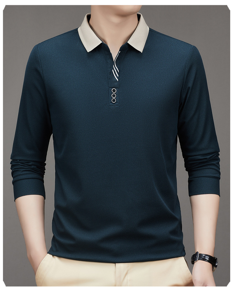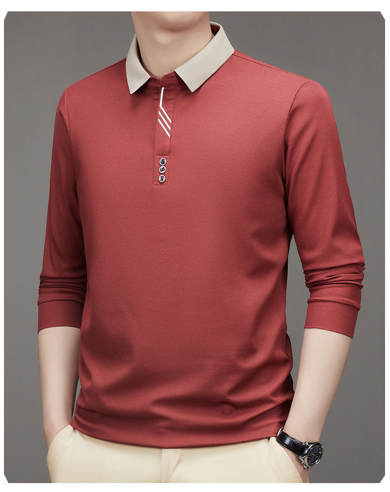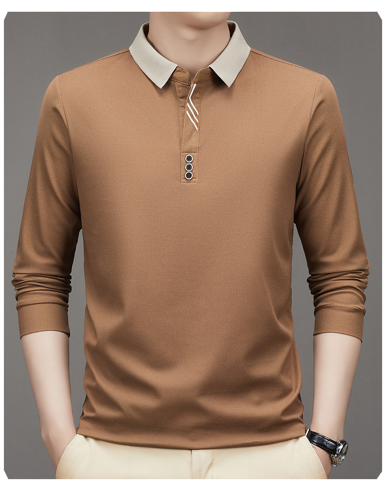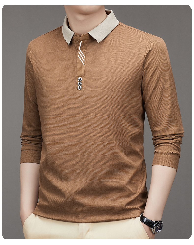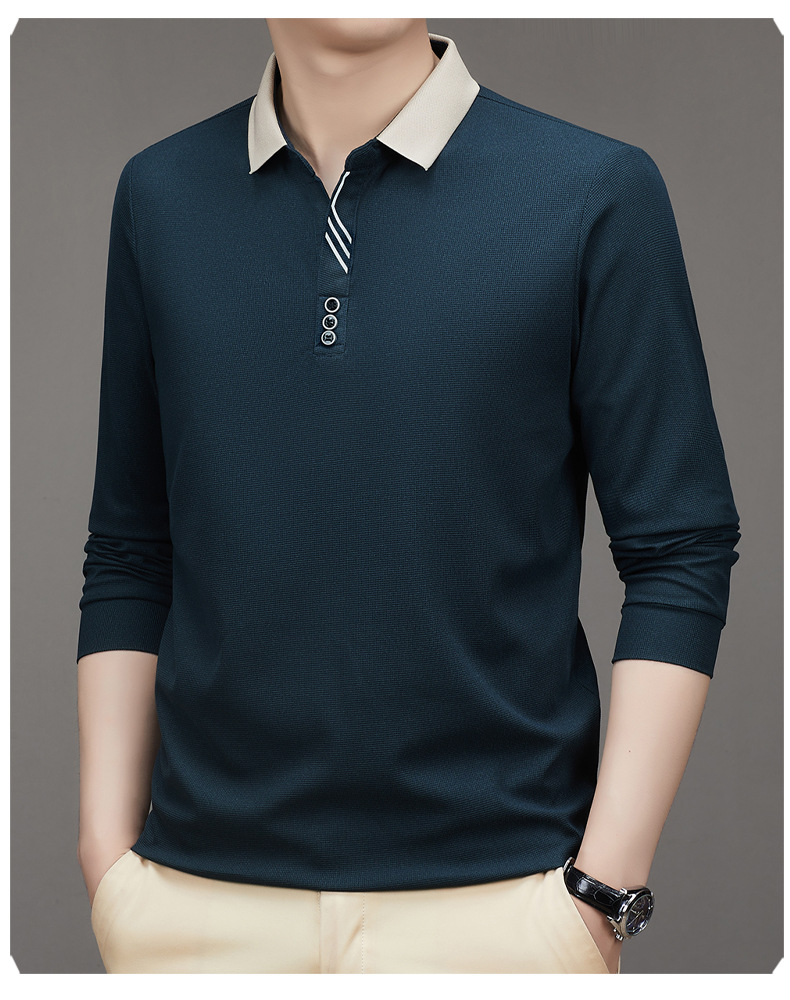 중영 비즈니스 셔츠 패션 올 매치 편안한 티셔츠 옷깃 긴 소매 POIO 셔츠 가벼운 명품 남성용 스웨터 가을 옷 I