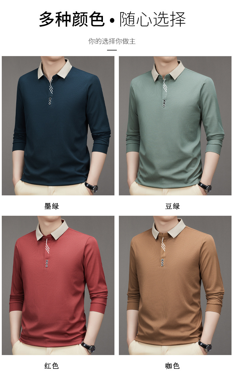 중영 비즈니스 셔츠 패션 올 매치 편안한 티셔츠 옷깃 긴 소매 POIO 셔츠 가벼운 명품 남성용 스웨터 가을 옷 I스토어 가기