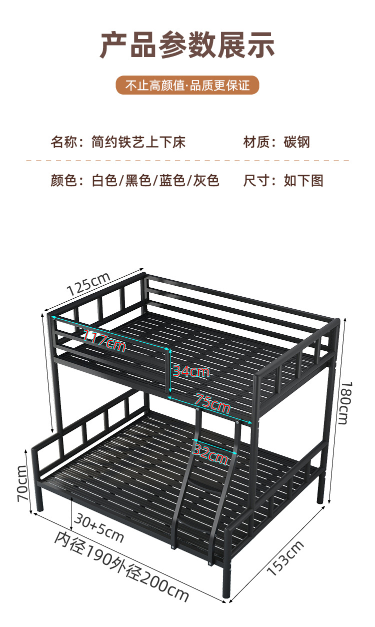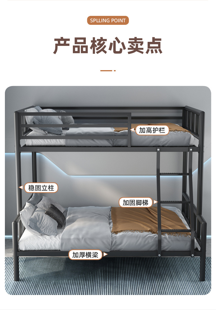 가정 높고 낮은 침대 두꺼운 침대 철 철 프레임 신제품 상하 이층 침대 침대 이층 철 침대스토어 가기