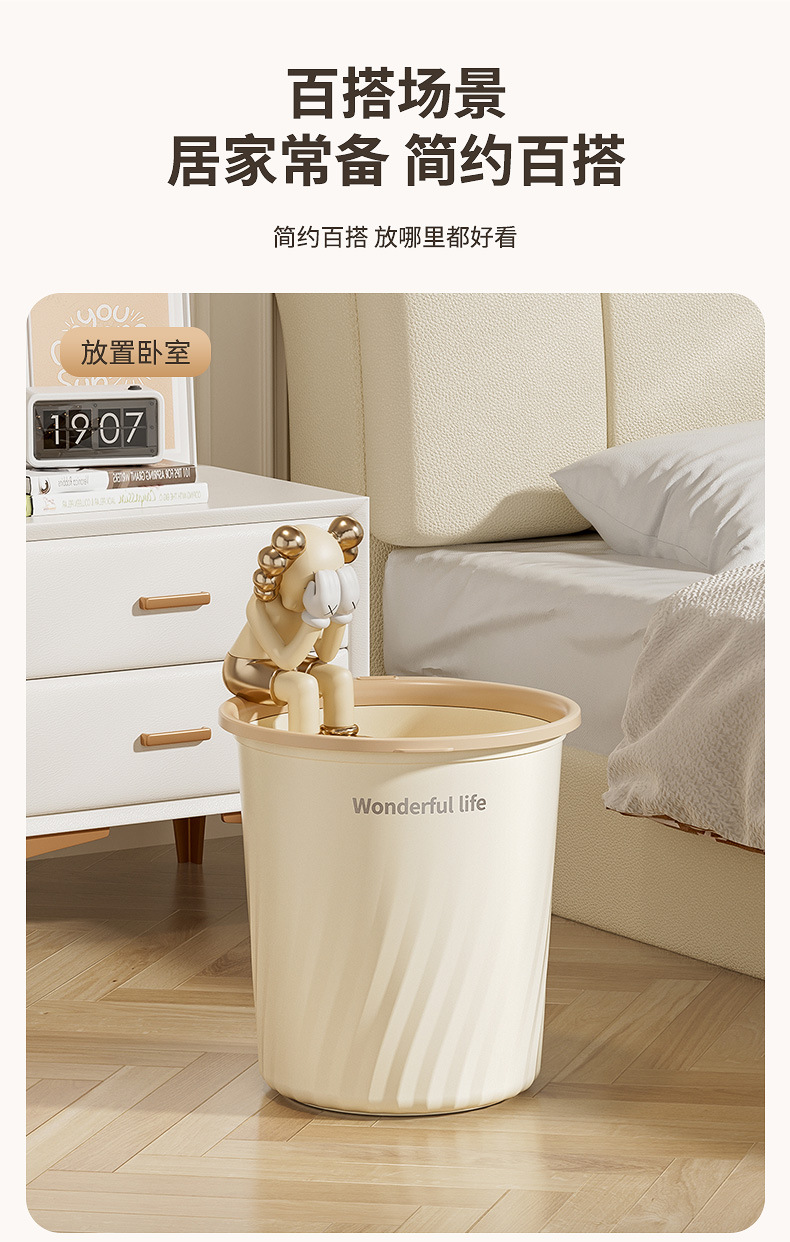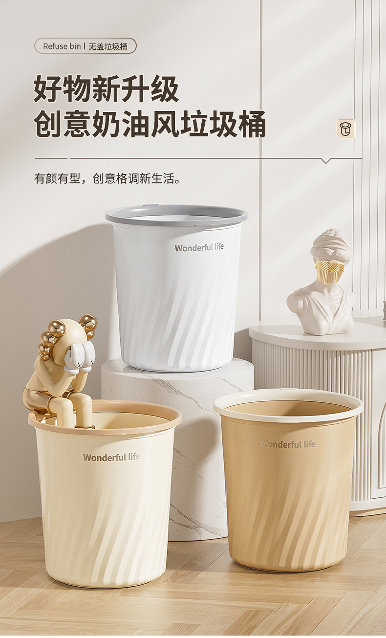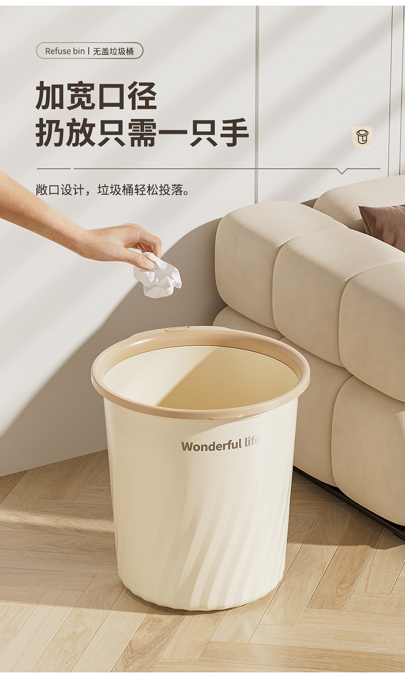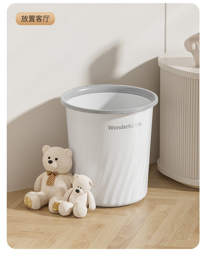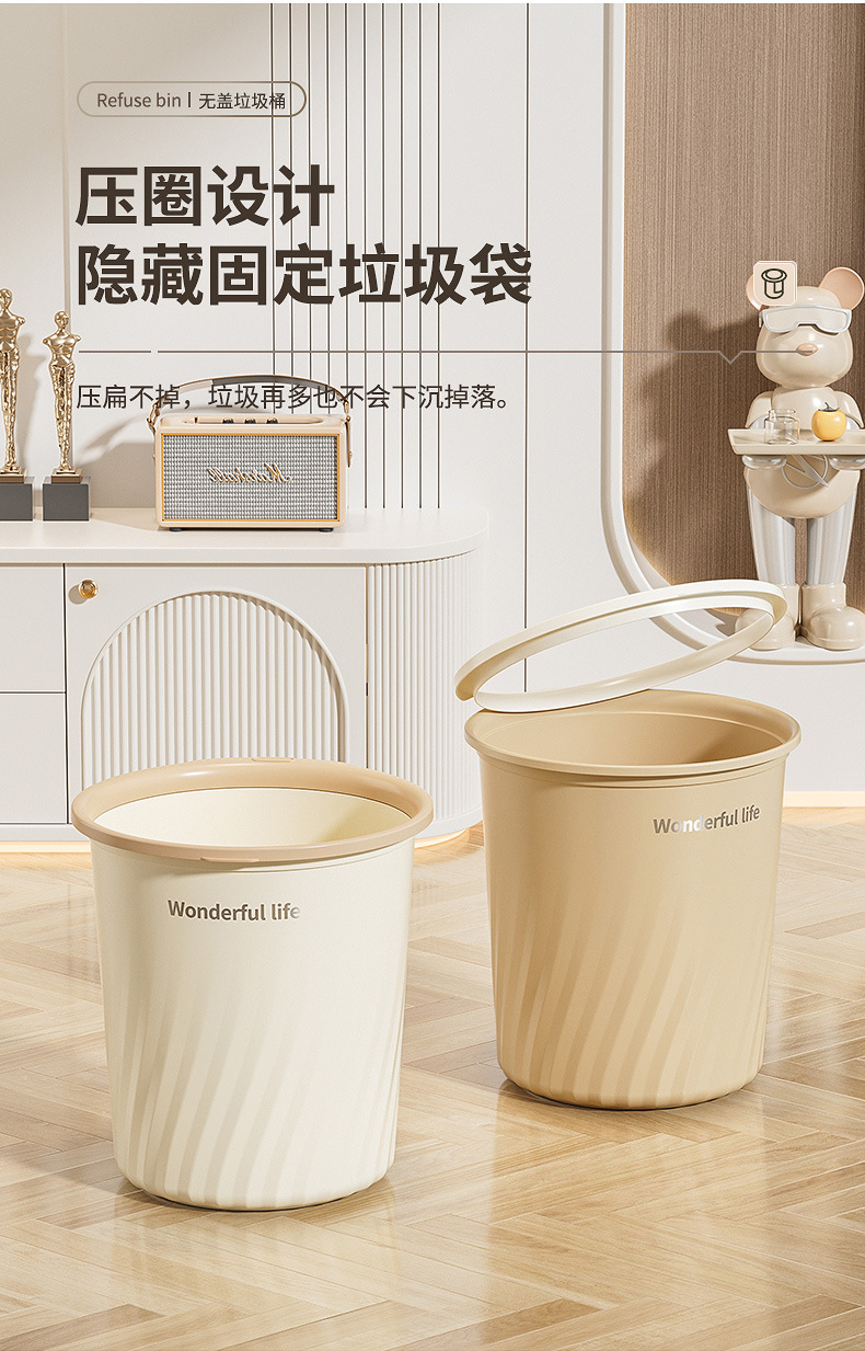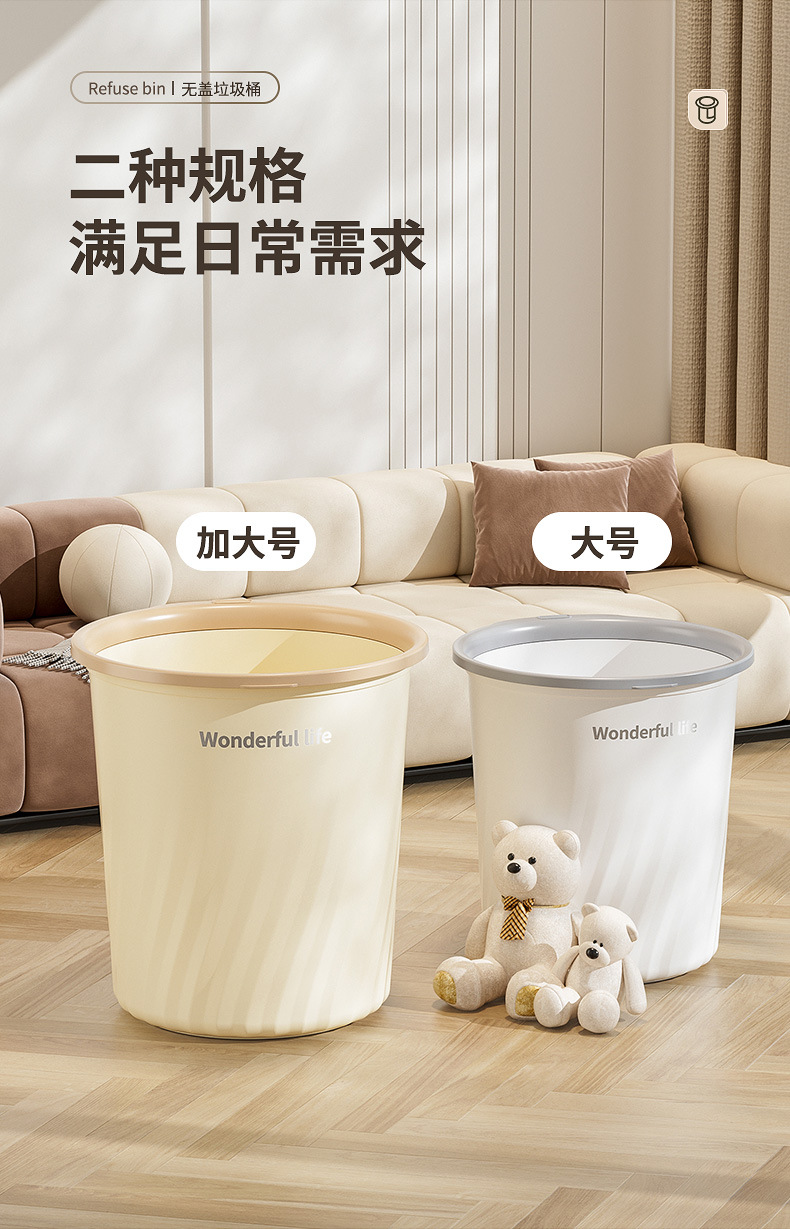 가정용 플라스틱 쓰레기통 거실 주방 욕실 대용량 커버리스 큰 직경 두꺼운 압력 링 휴지통스토어 가기
