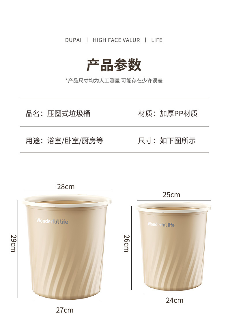 가정용 플라스틱 쓰레기통 거실 주방 욕실 대용량 커버리스 큰 직경 두꺼운 압력 링 휴지통