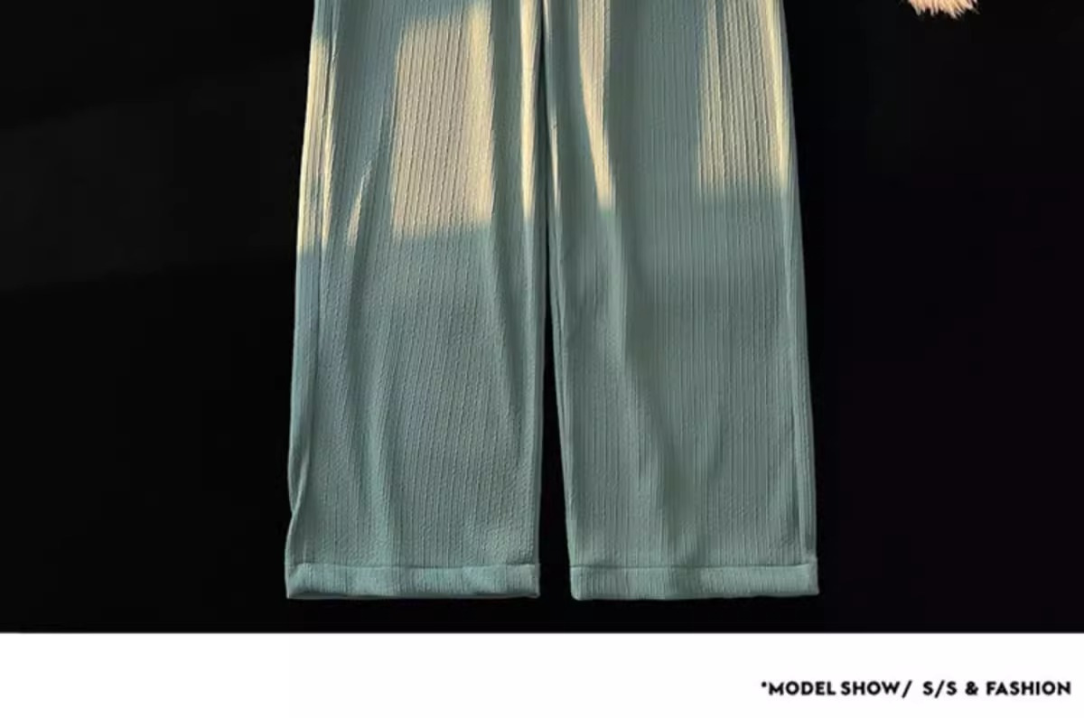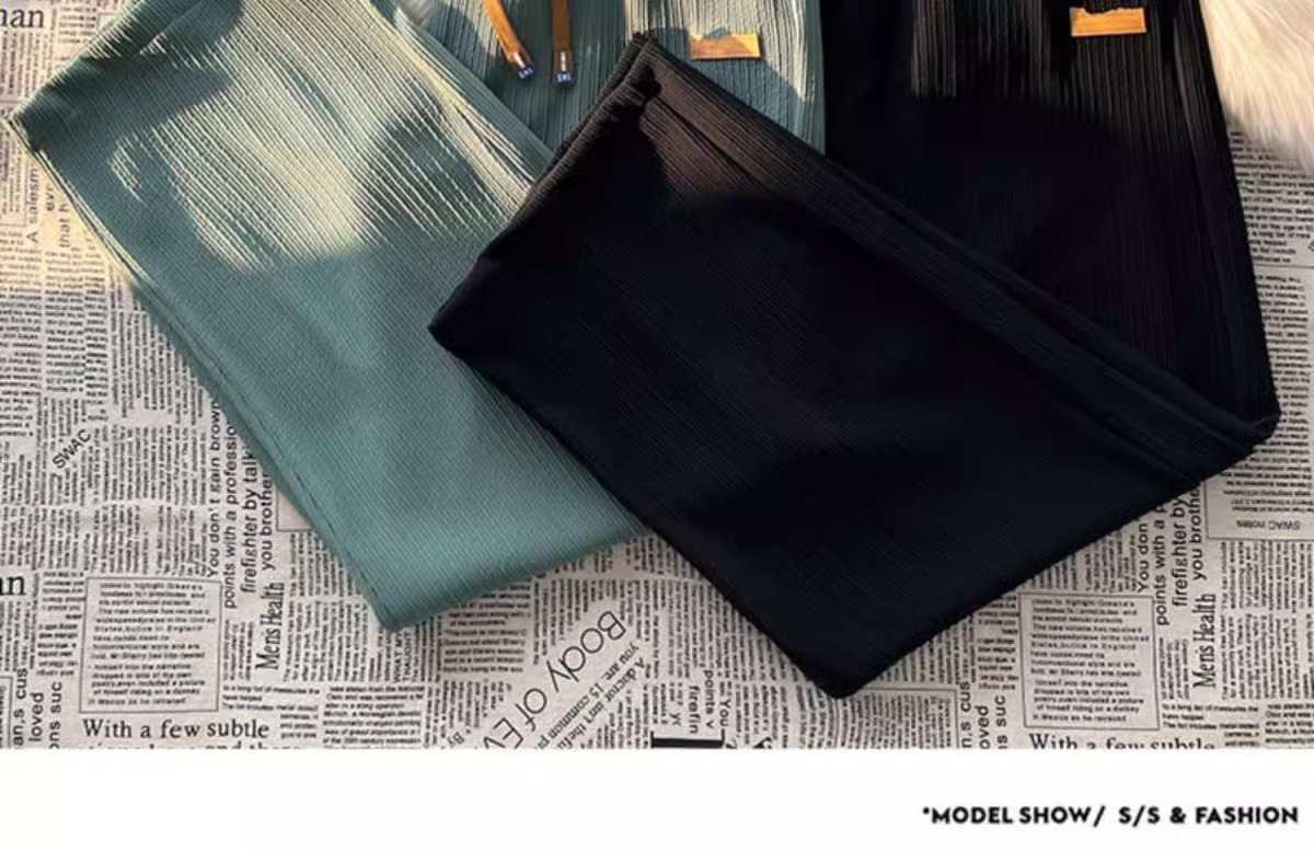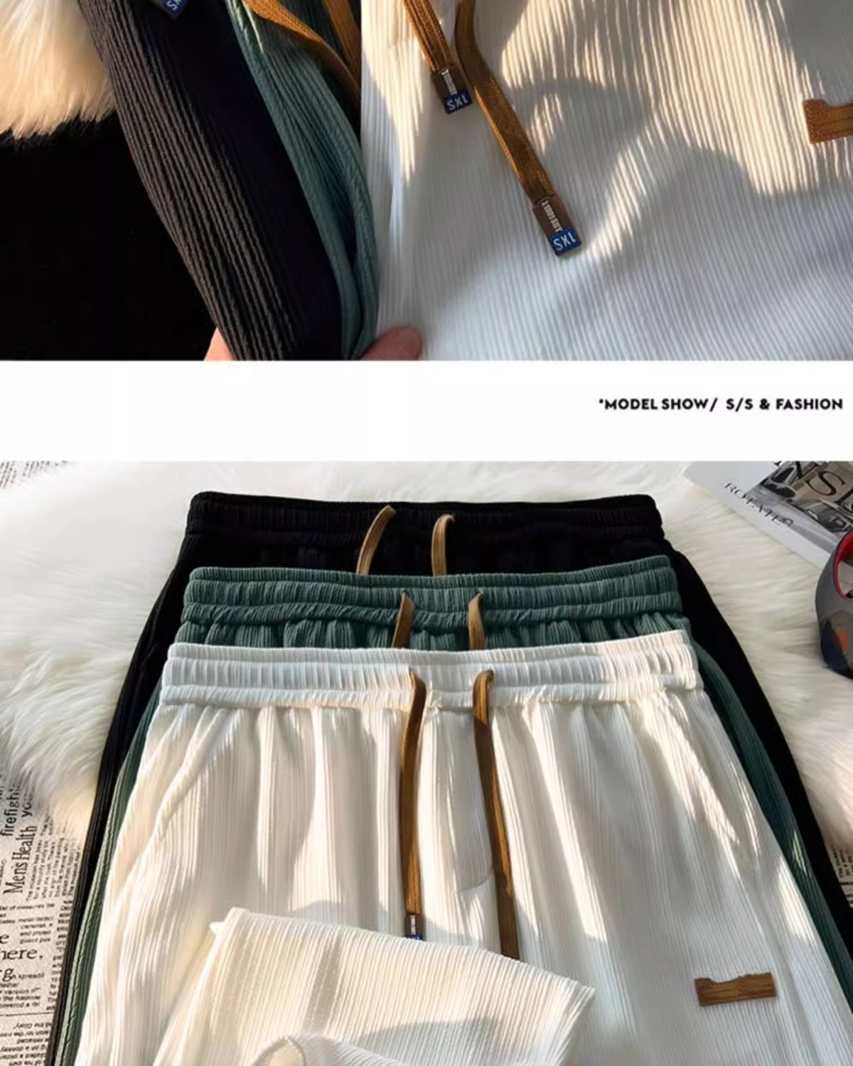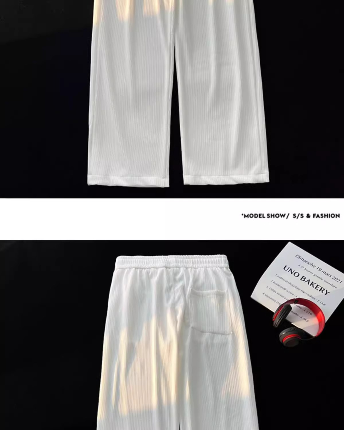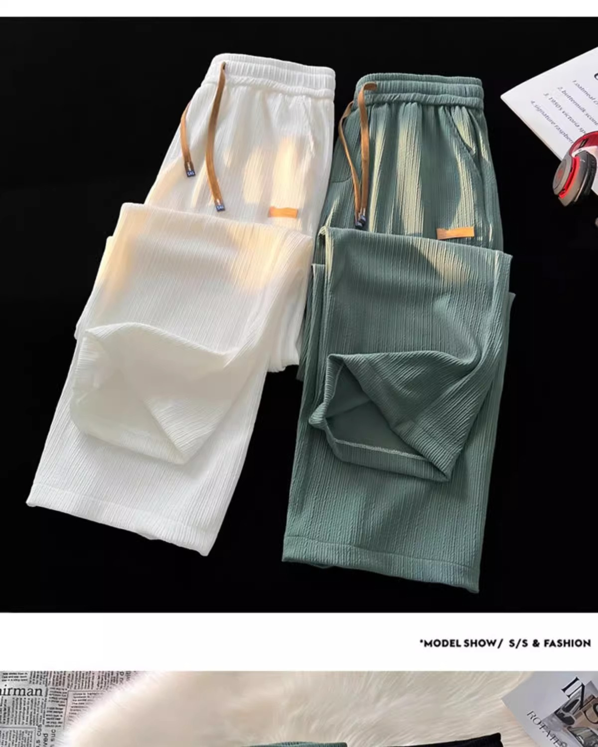 2024 플러스 사이즈 폭발 느슨한 캐주얼 아이스 실크 스트레이트 다리 바지 남성과 여성을위한 봄과 여름 새로운 디자인 수 놓은 넓은 다리 바지 느낌