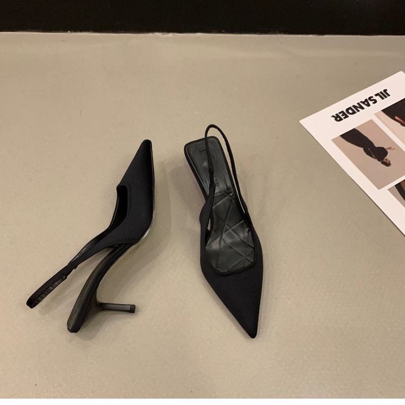 하이힐 신발 여성 신발 프랑스 스퀘어 헤드 1 자 공기질 바람 작은 신선한 샌들 봄과 가을 단층 신발은 발가락 반 처지를 덮었습니다.