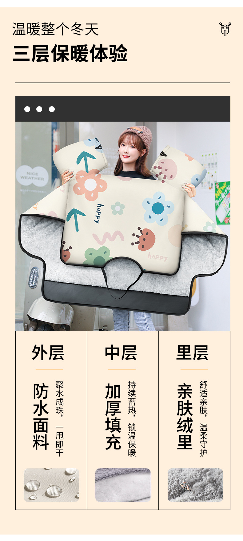 전기 자전거/전기차용 겨울용 플러시 방풍 커버, 여성용 야디/아이마 봄/가을 방수 방한 커버 (넓은 사이즈)스토어 가기