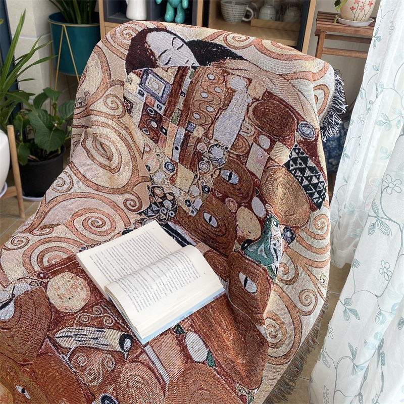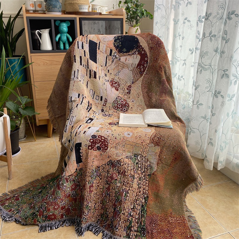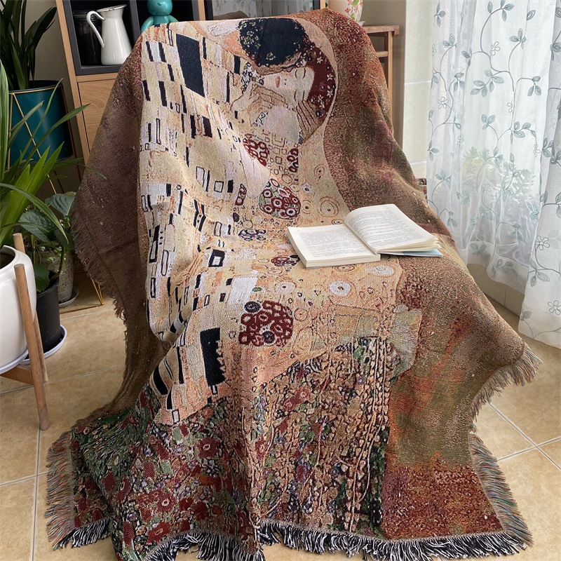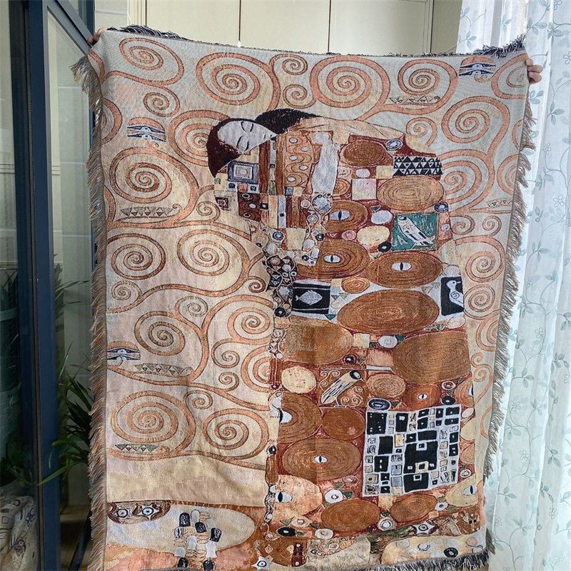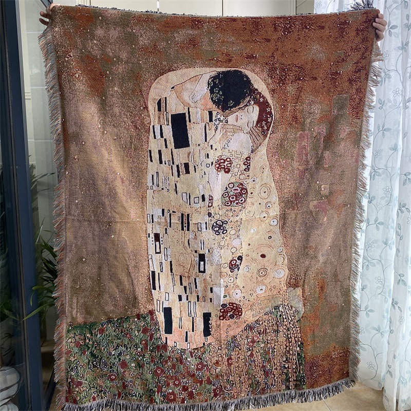 국경 간 TAPESTRY THROW Klimt 키스 빈티지 소파 타월 커버 천 매달려있는 천 담요 분위기 테이블 천