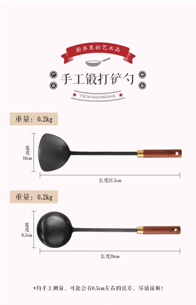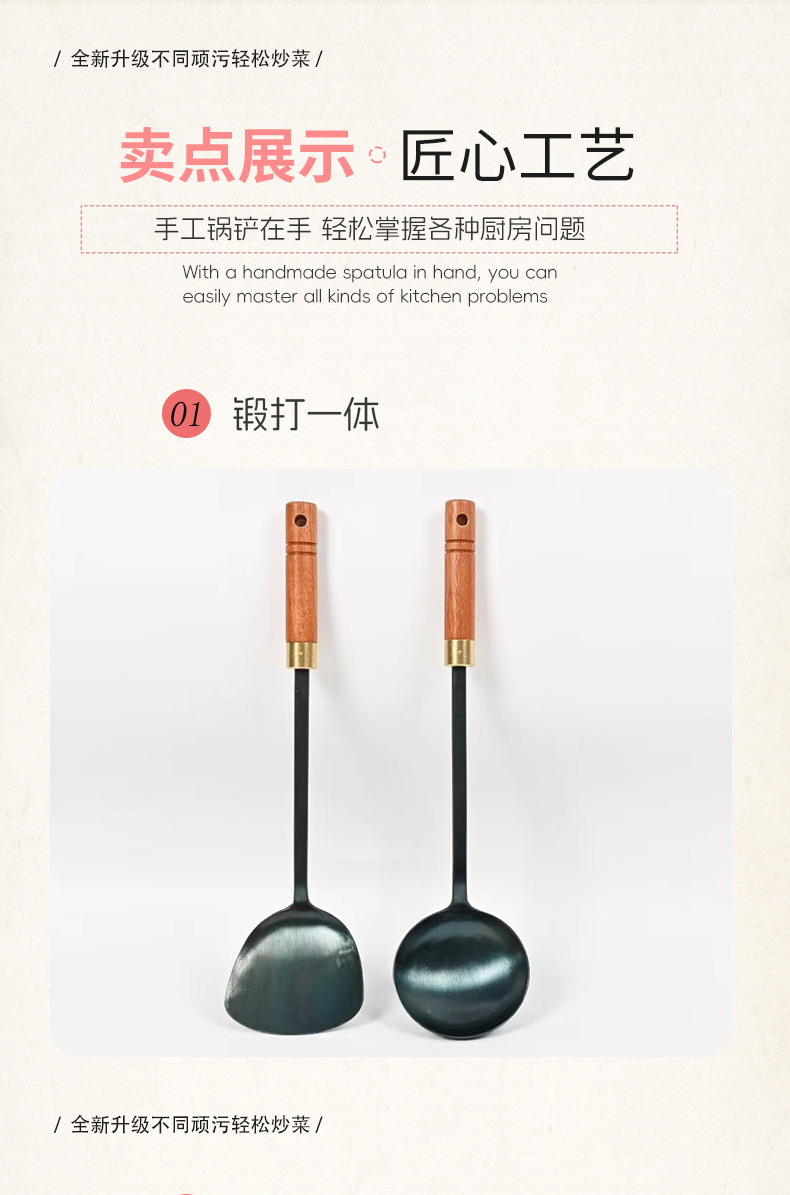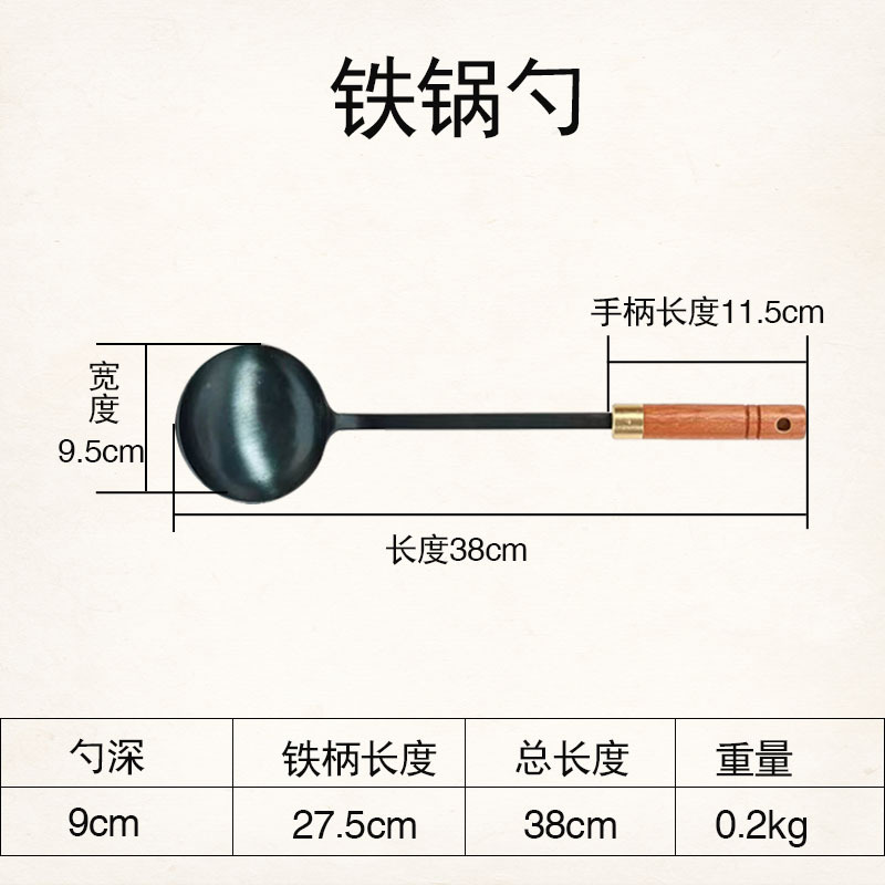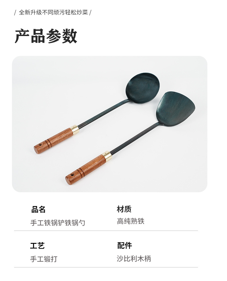 철제 냄비주걱, 수저, 국자, 주방용 나무 손잡이 조리용 숟가락, 주걱, 주방용품 세트, 철판구이용 긴 손잡이 미끄럼 방지 주걱