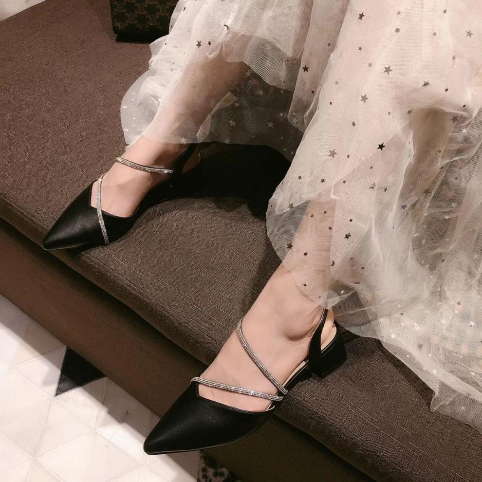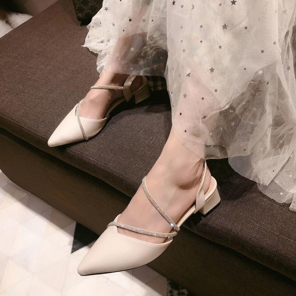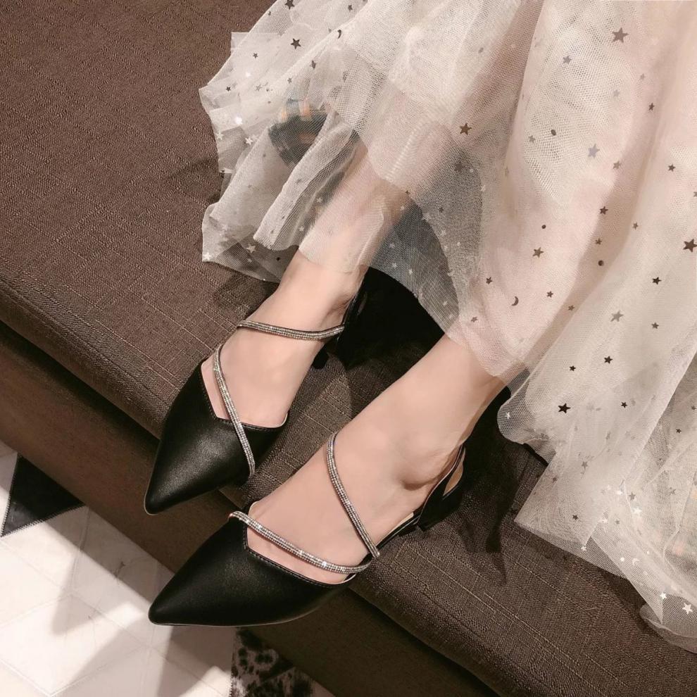샌들 페어리 스타일 2025 봄 새 스타일 바오 터우 두꺼운 힐 올 매치 포인팅 라인스톤 매칭 스커트 리어 빈 싱글 슈즈