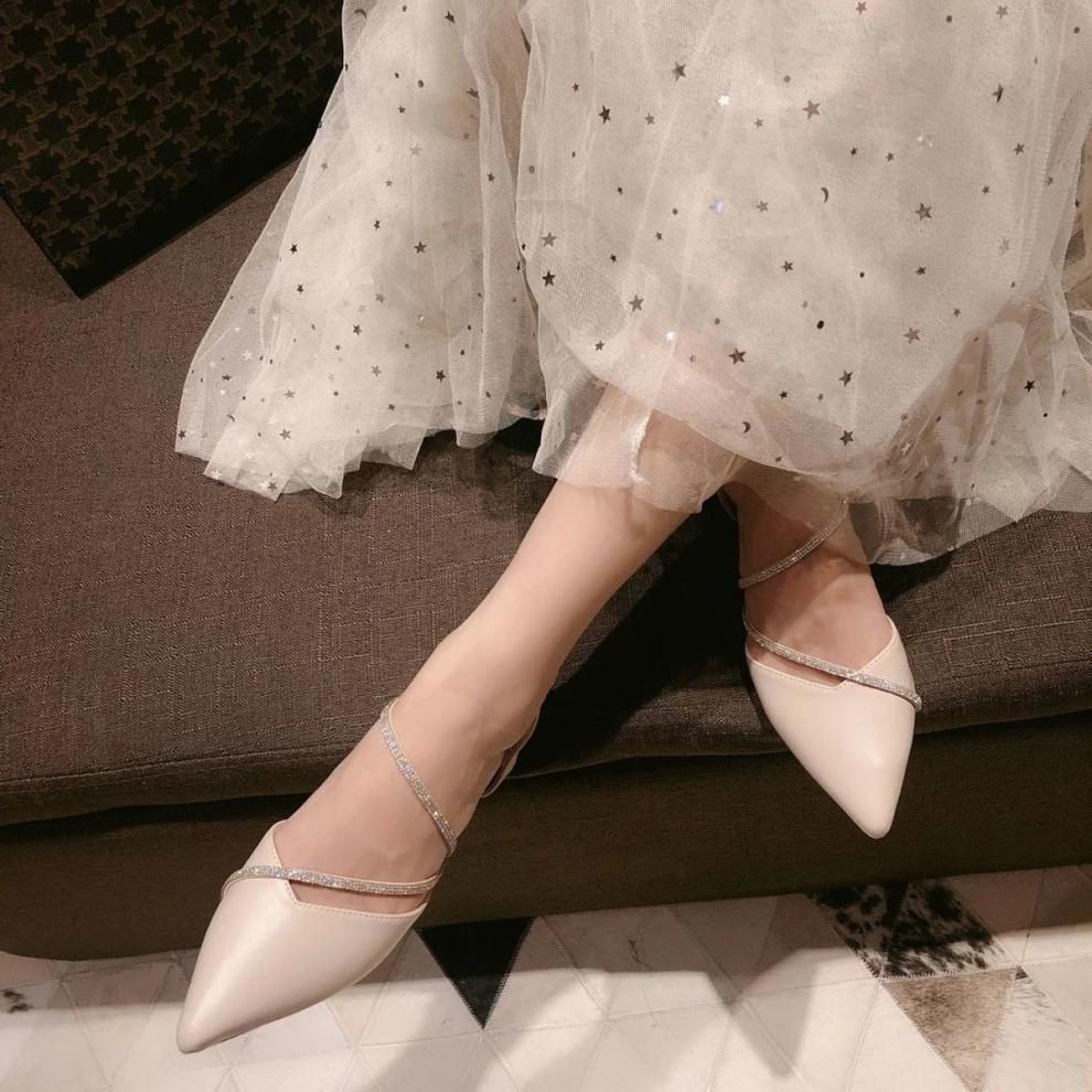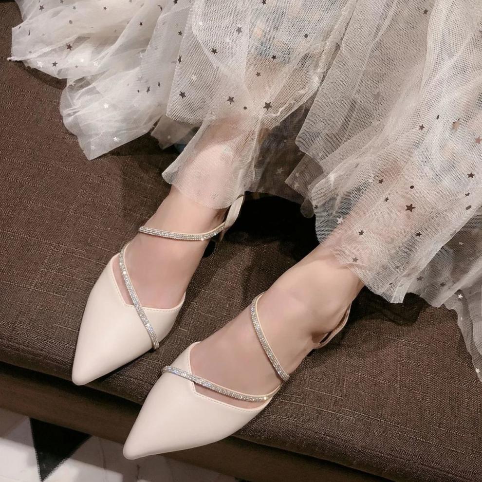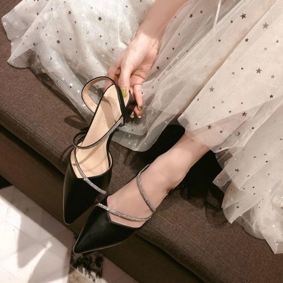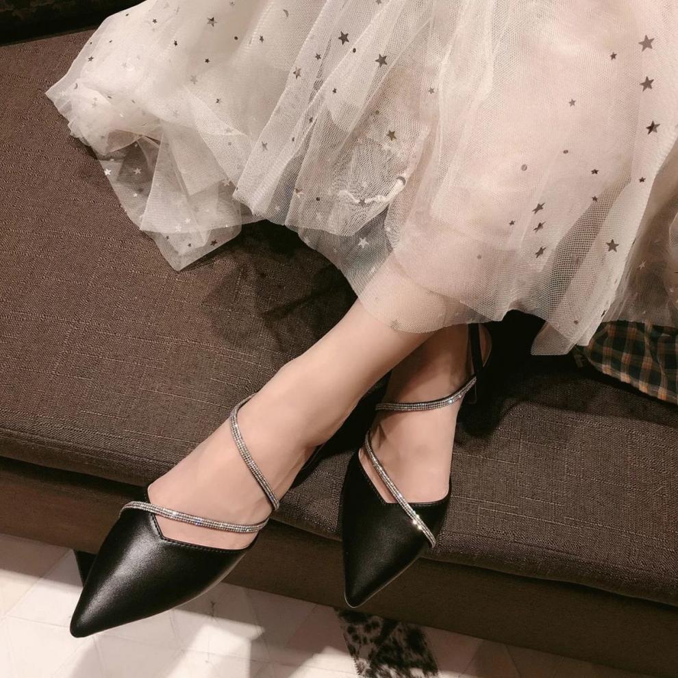 샌들 페어리 스타일 2025 봄 새 스타일 바오 터우 두꺼운 힐 올 매치 포인팅 라인스톤 매칭 스커트 리어 빈 싱글 슈즈