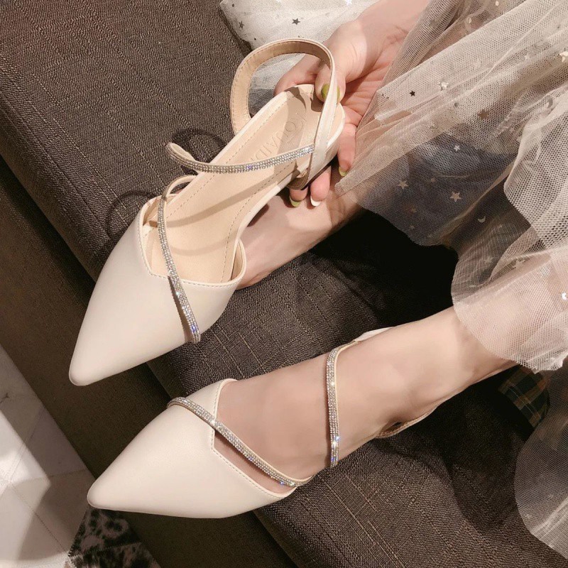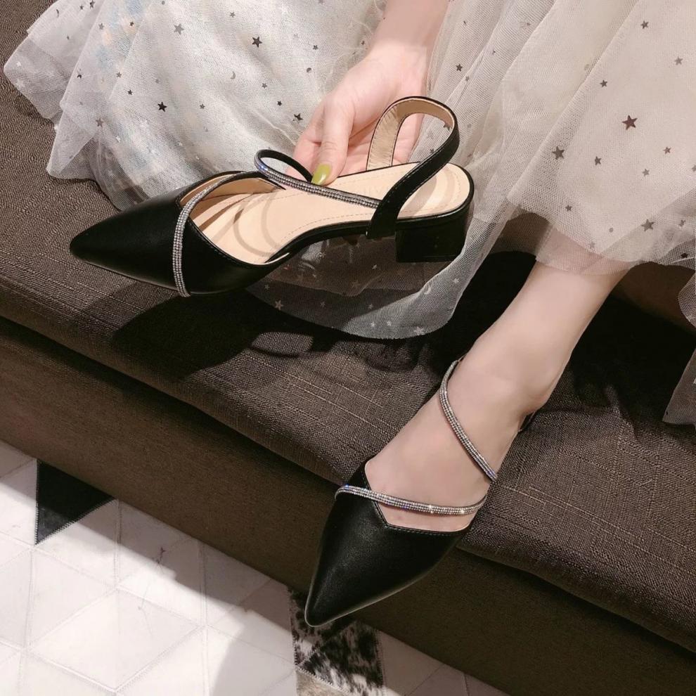 샌들 페어리 스타일 2025 봄 새 스타일 바오 터우 두꺼운 힐 올 매치 포인팅 라인스톤 매칭 스커트 리어 빈 싱글 슈즈스토어 가기