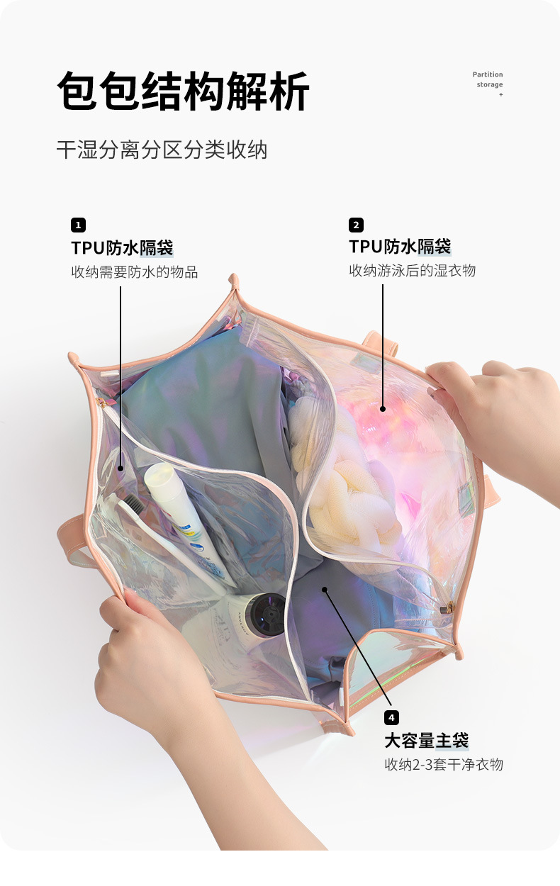 화려한 남성용 방수 수영 가방, 한국산 밀봉 젤리 가방, 여성용 휴대용 다용도 비치 수납 가방, 세면용품 수납 가방스토어 가기