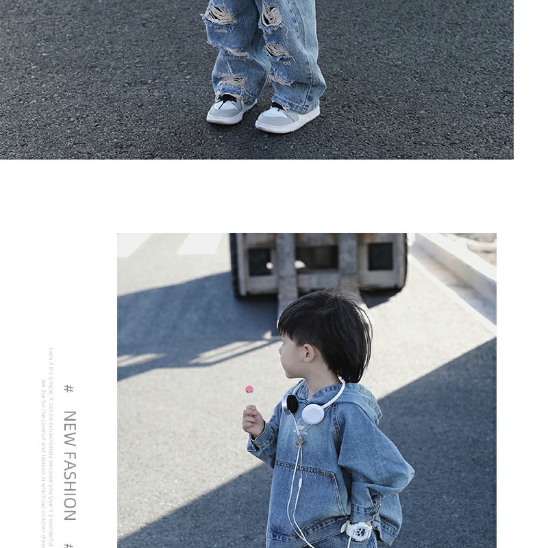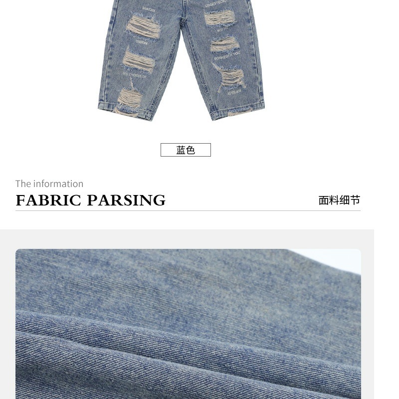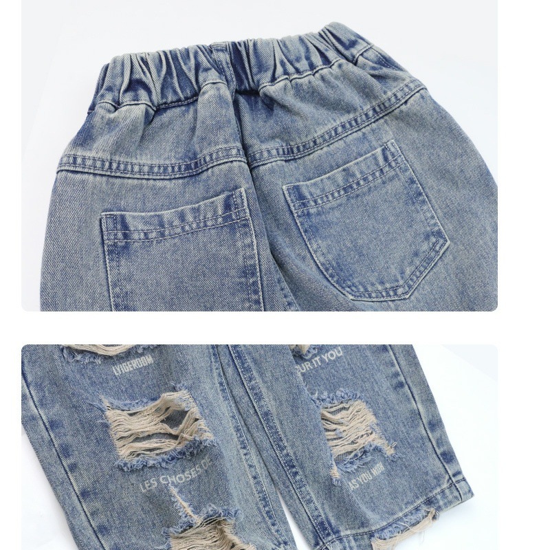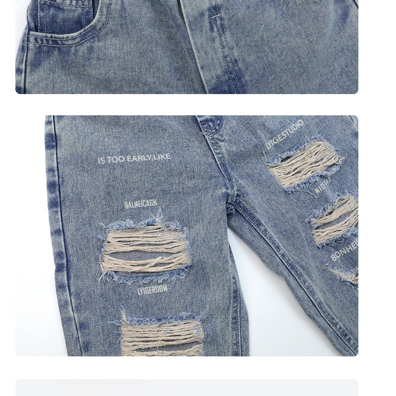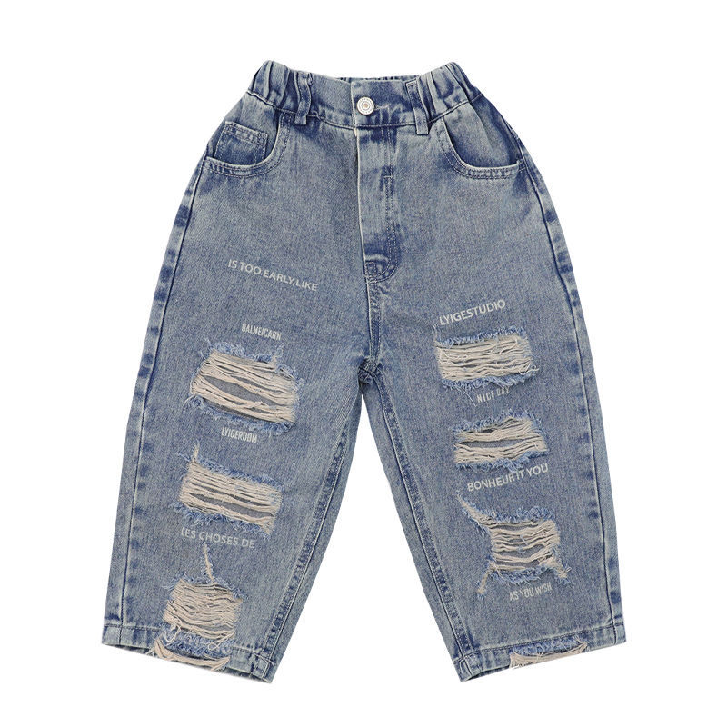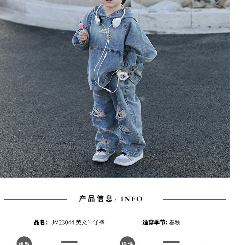 패션 튀김 거리 봄 새로운 성격 찢어진 청바지 2024 조수 시원한 소년 스트레이트 바지 어린이 슈퍼 멋진 바지스토어 가기